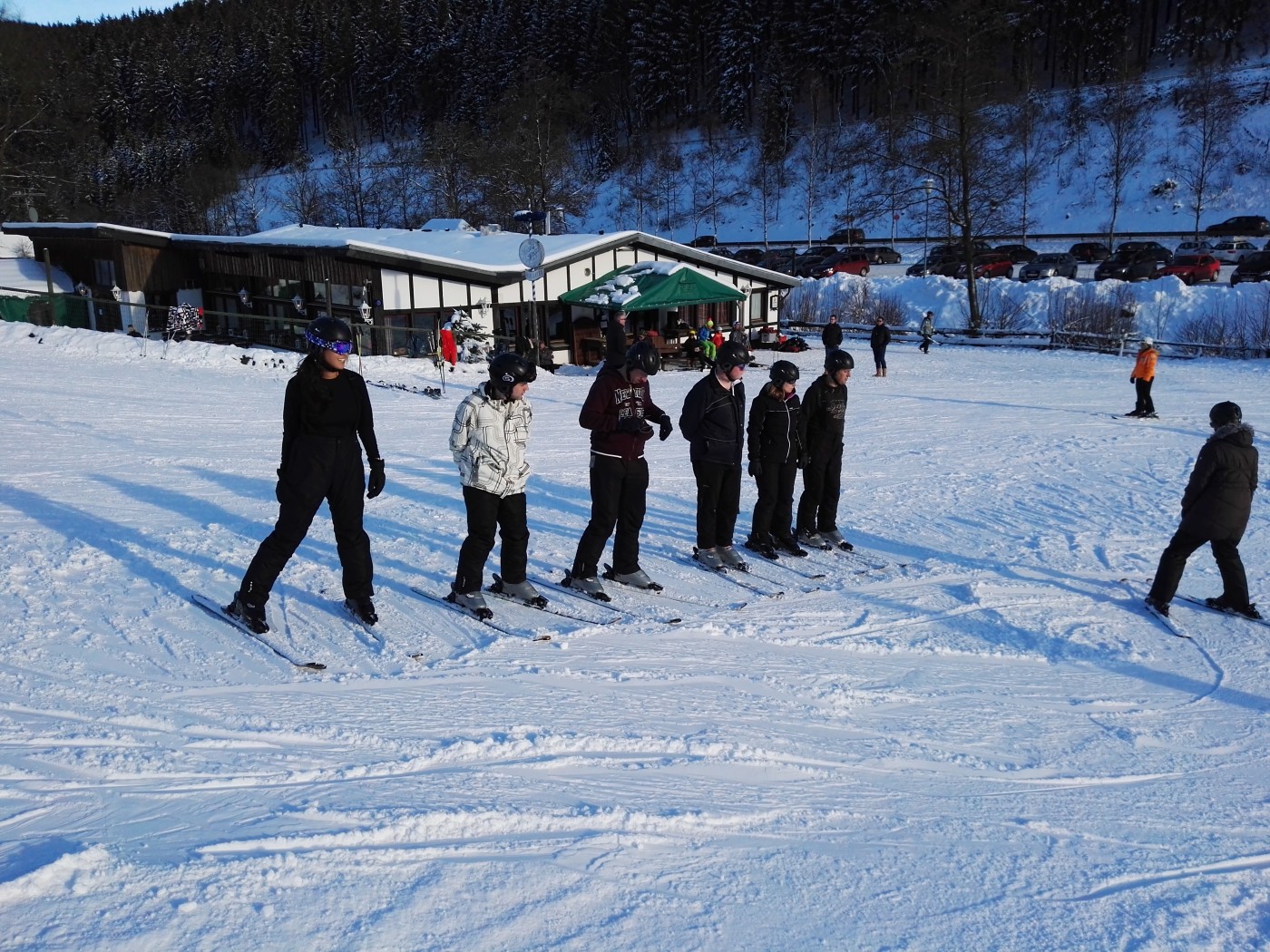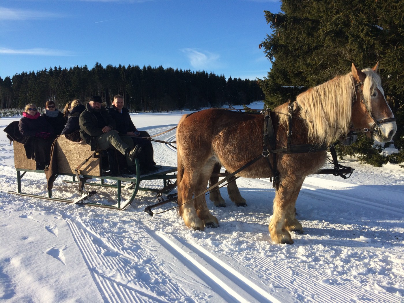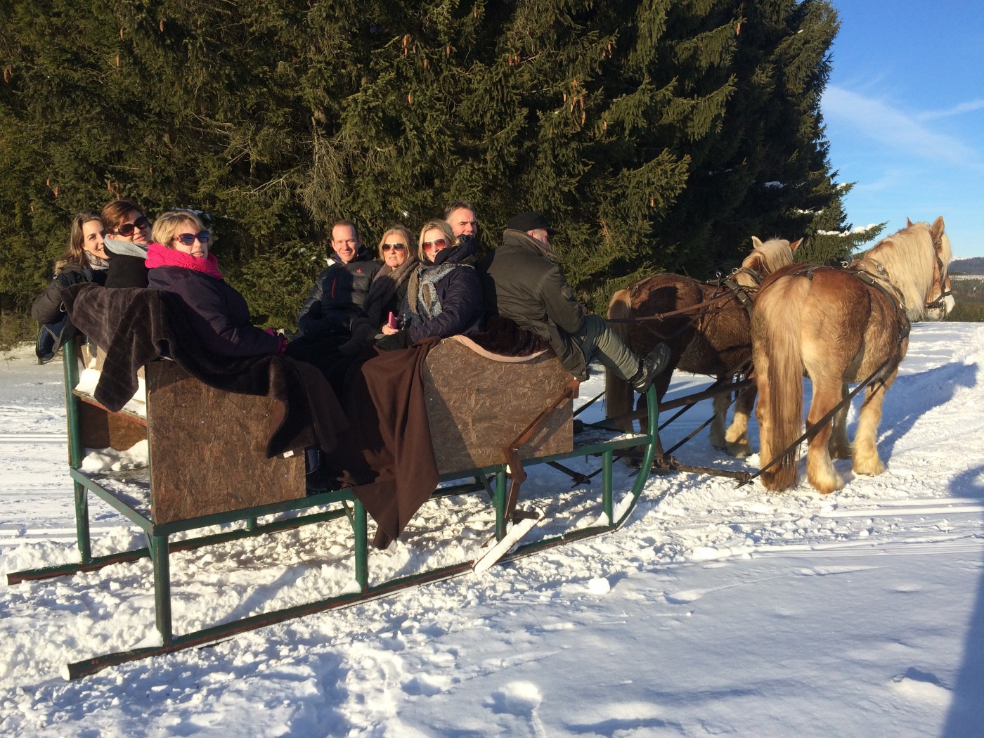 Vrijdagochtend eerst nog vergaderen en presentaties, waarbij wordt gestreden om een mooie prijs. Die blijft nog even geheim. Daarna snel met z’n allen de bus in en op naar de Hohe Lied. Een heerlijk rustige piste die lekker in het zonnetje ligt.De ervaren skiërs en boarders stappen meteen in de lift. De beginners starten aan de voet van de piste en de wandelaars verdwijnen al snel de bossen in met onder hun voeten de sneeuwschoenen. Bij de lunch ziet iedereen elkaar weer terug en is er al veel te vertellen over de ochtend. In de middag wordt de piste weer onveilig gemaakt en vertrekken de wandelaars richting de arrenslee. Heerlijk in het zonnetje worden ze door de paarden door een winters landschap gereden.