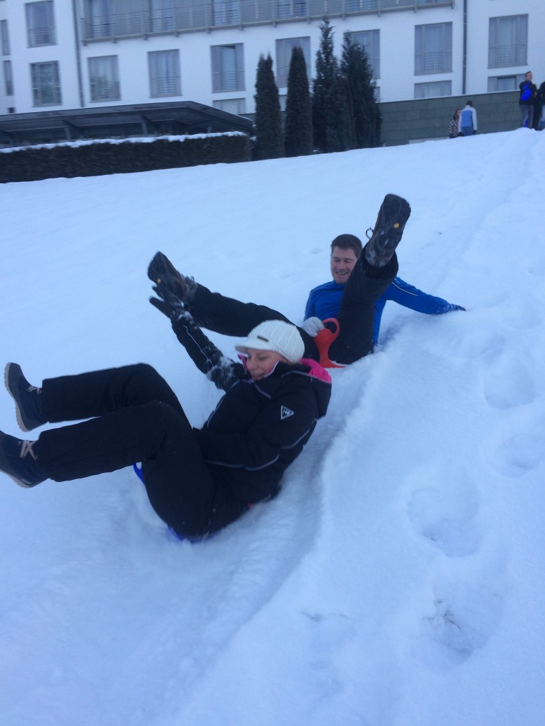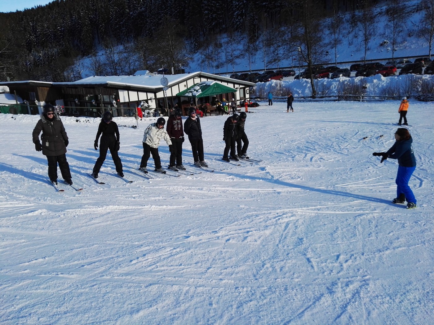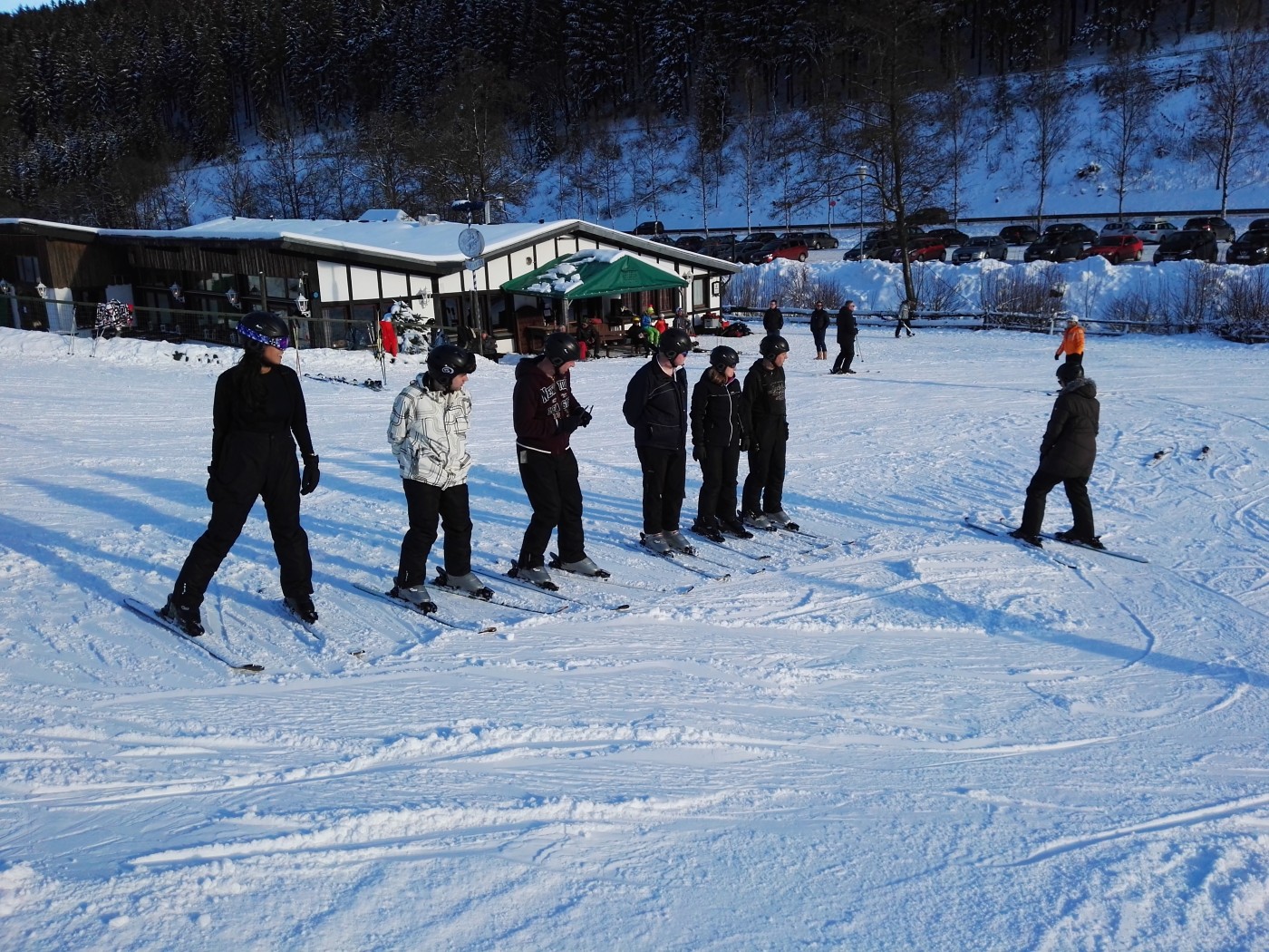 Vrijdagochtend eerst nog vergaderen en presentaties, waarbij wordt gestreden om een mooie prijs. Die blijft nog even geheim. Daarna snel met z’n allen de bus in en op naar de Hohe Lied. Een heerlijk rustige piste die lekker in het zonnetje ligt.De ervaren skiërs en boarders stappen meteen in de lift. De beginners starten aan de voet van de piste en de wandelaars verdwijnen al snel de bossen in met onder hun voeten de sneeuwschoenen. Bij de lunch ziet iedereen elkaar weer terug en is er al veel te vertellen over de ochtend. In de middag wordt de piste weer onveilig gemaakt en vertrekken de wandelaars richting de arrenslee. Heerlijk in het zonnetje worden ze door de paarden door een winters landschap gereden.