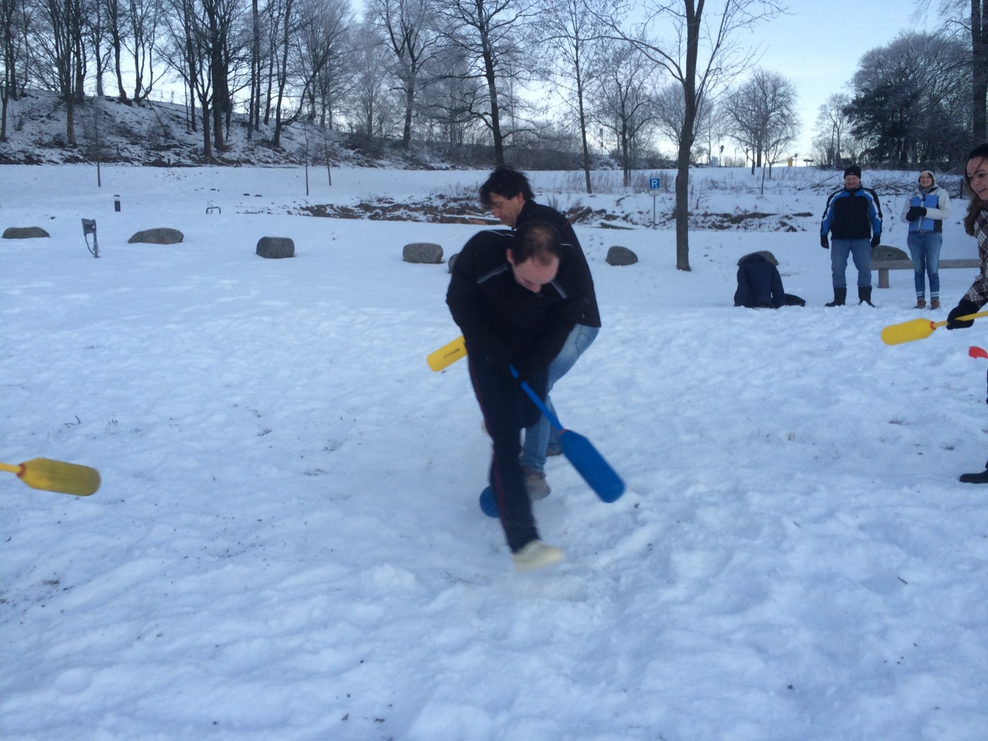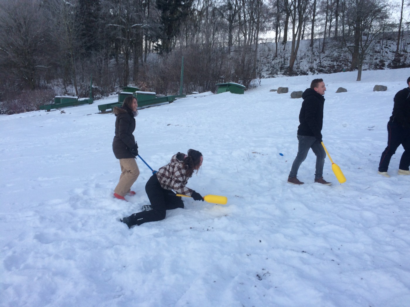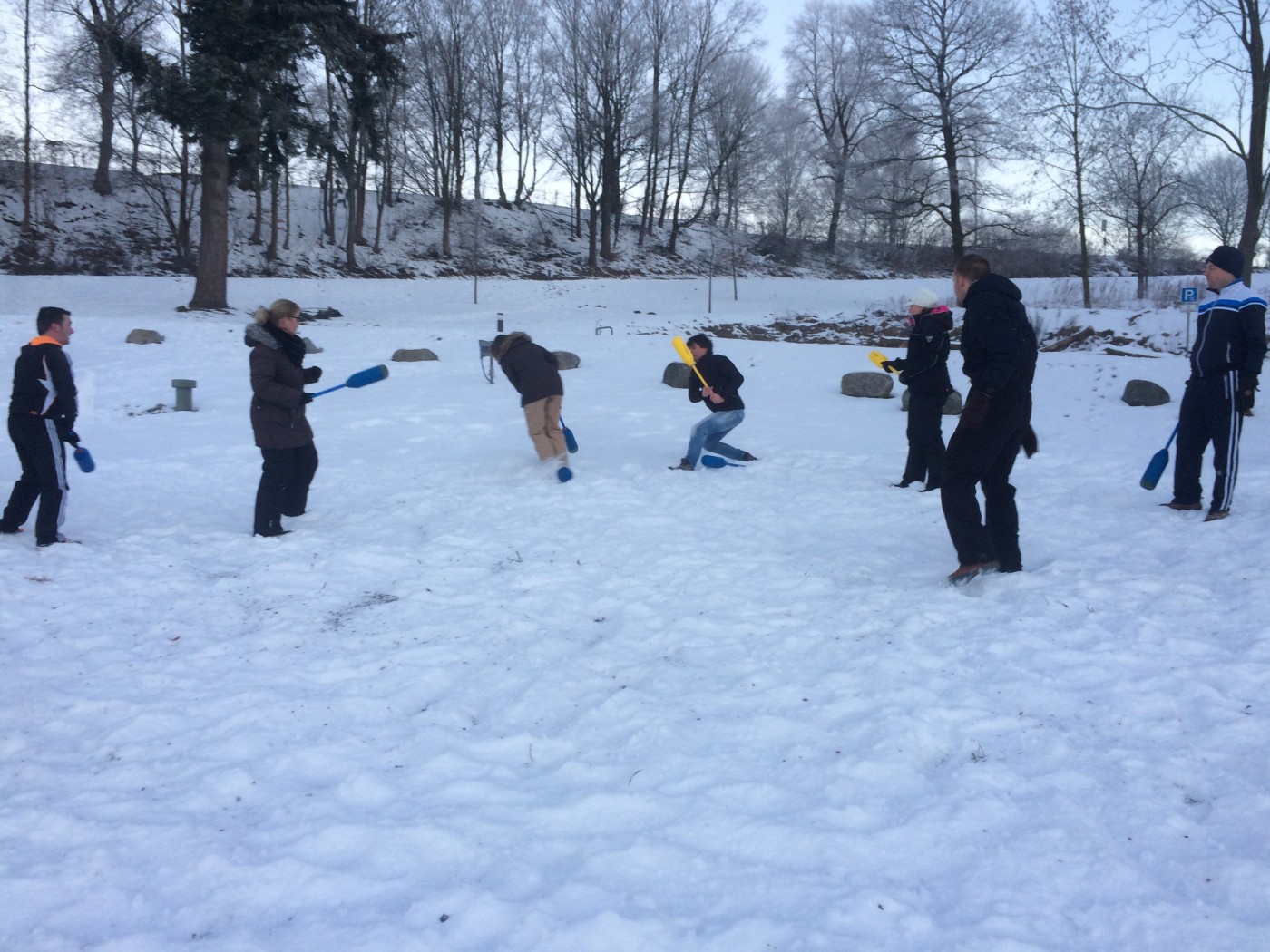 Op zaterdagochtend staat er nog een snowbootcamp op het programma. Voor een aantal is het toch nog wat vroeg zo na de feestavond. Niet iedereen komt opdagen, maar degenen die er zijn, gaan er ook voor. Na de warming up vliegen knotsen en sneeuw al snel om de oren bij een aantal stevige potjes knotshockey. Niets of niemand wordt ontzien. Na de slee estafette heeft iedereen echt overal sneeuw zitten en is het tijd voor een douche en ontbijt.