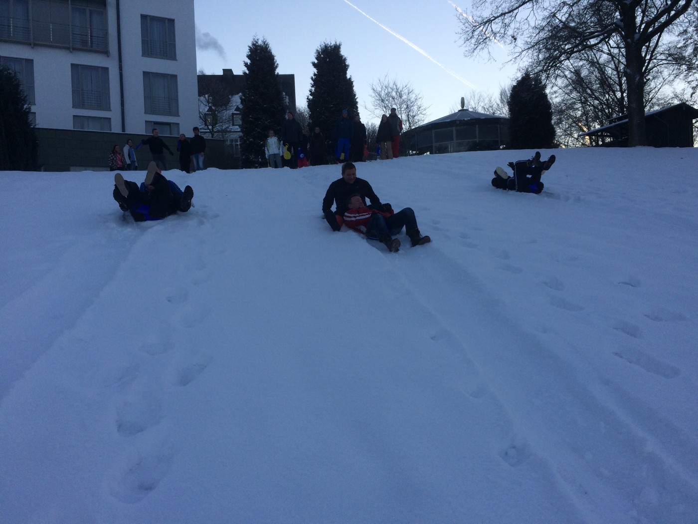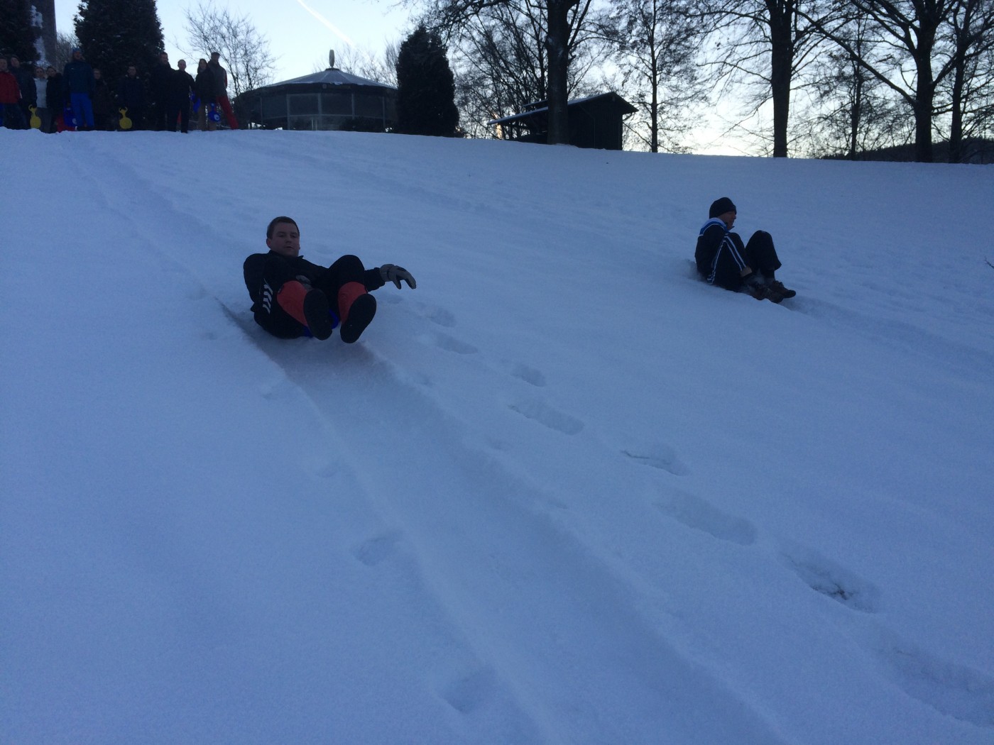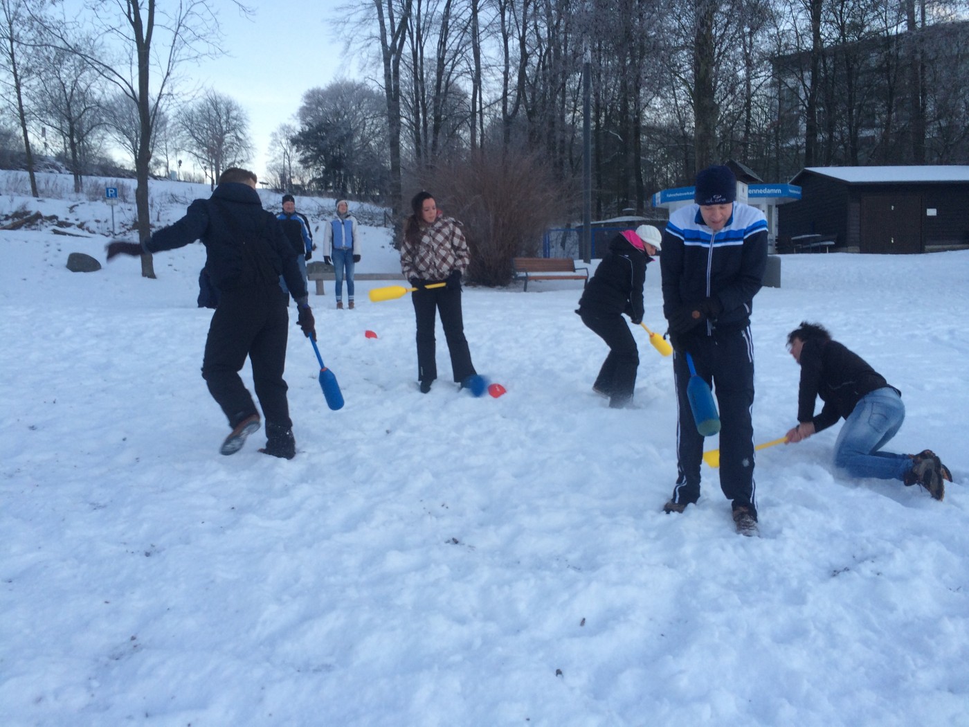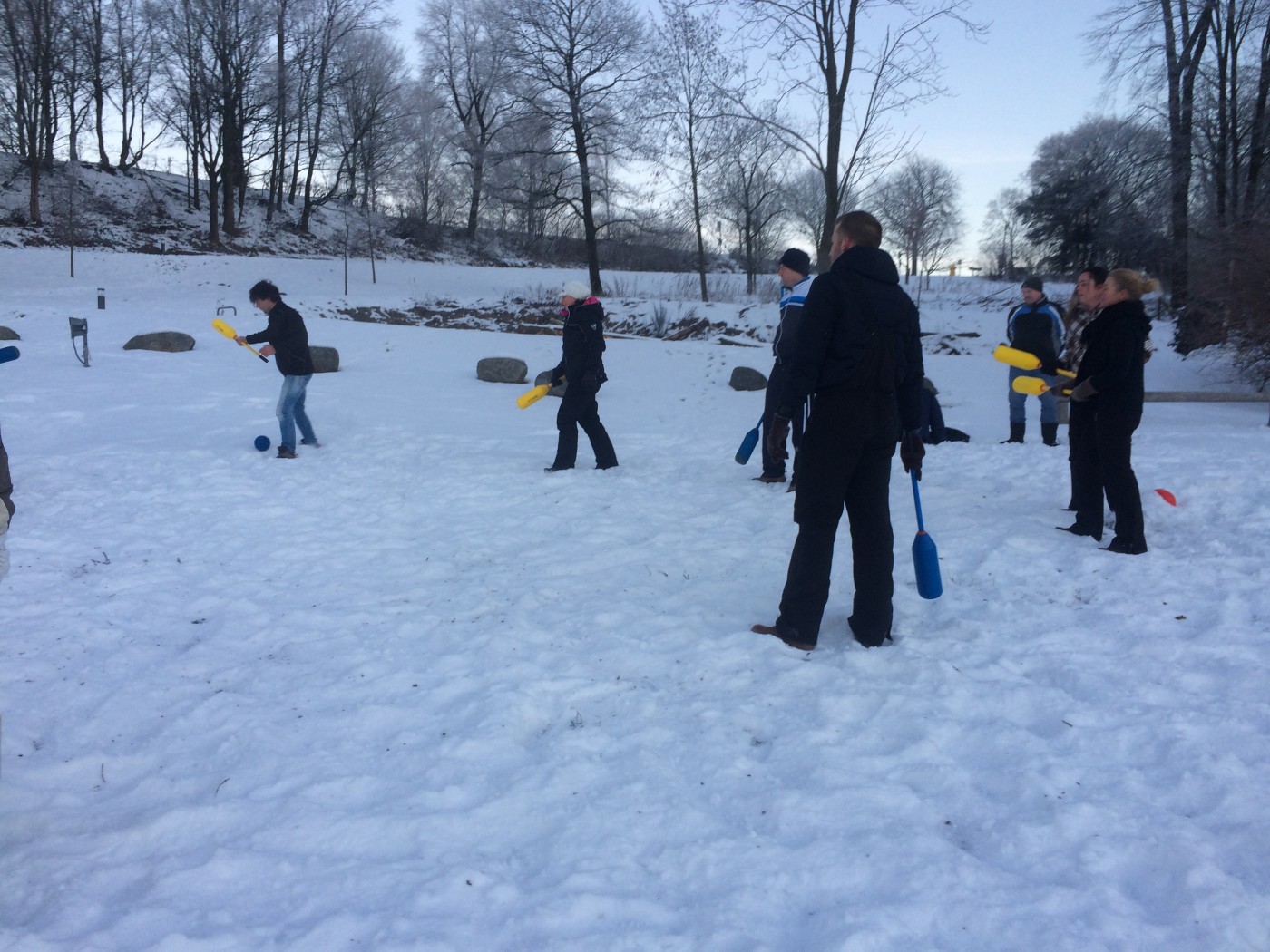 Op zaterdagochtend staat er nog een snowbootcamp op het programma. Voor een aantal is het toch nog wat vroeg zo na de feestavond. Niet iedereen komt opdagen, maar degenen die er zijn, gaan er ook voor. Na de warming up vliegen knotsen en sneeuw al snel om de oren bij een aantal stevige potjes knotshockey. Niets of niemand wordt ontzien. Na de slee estafette heeft iedereen echt overal sneeuw zitten en is het tijd voor een douche en ontbijt.