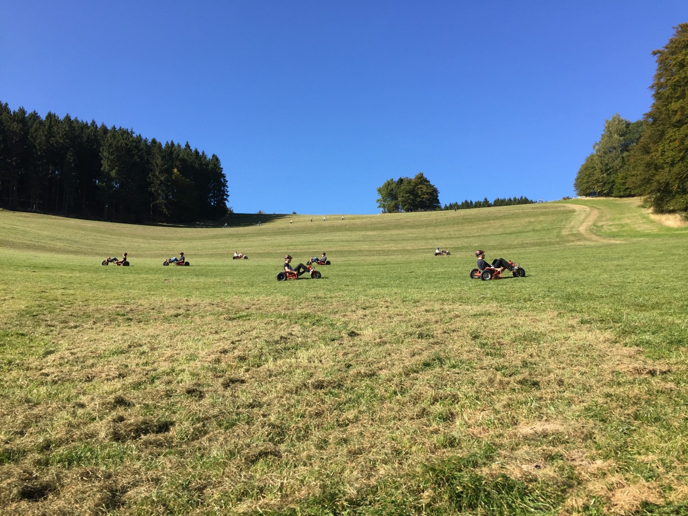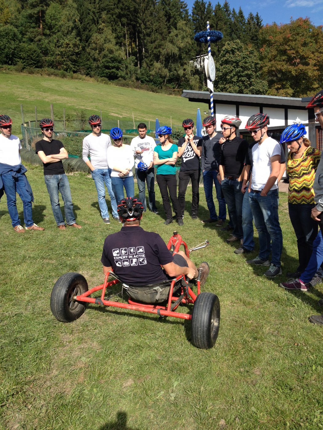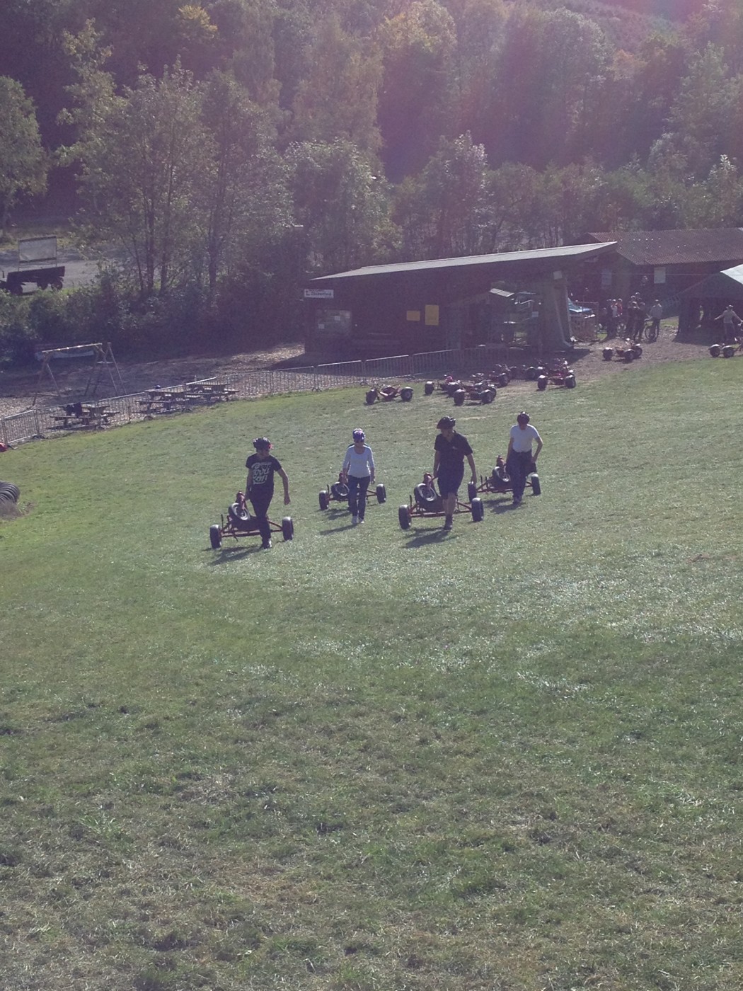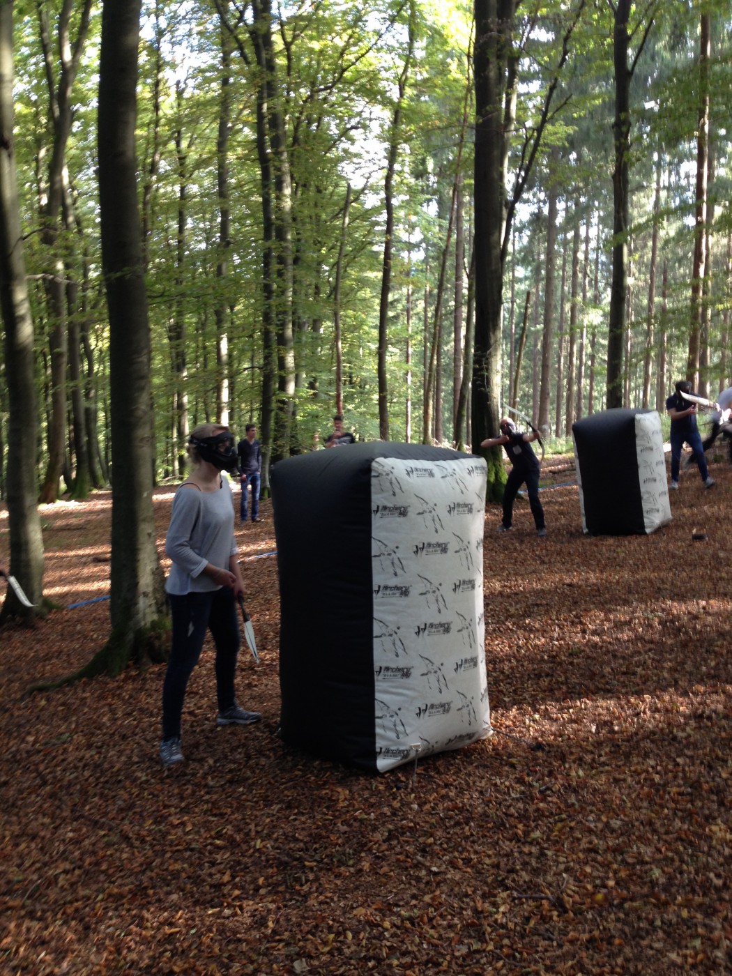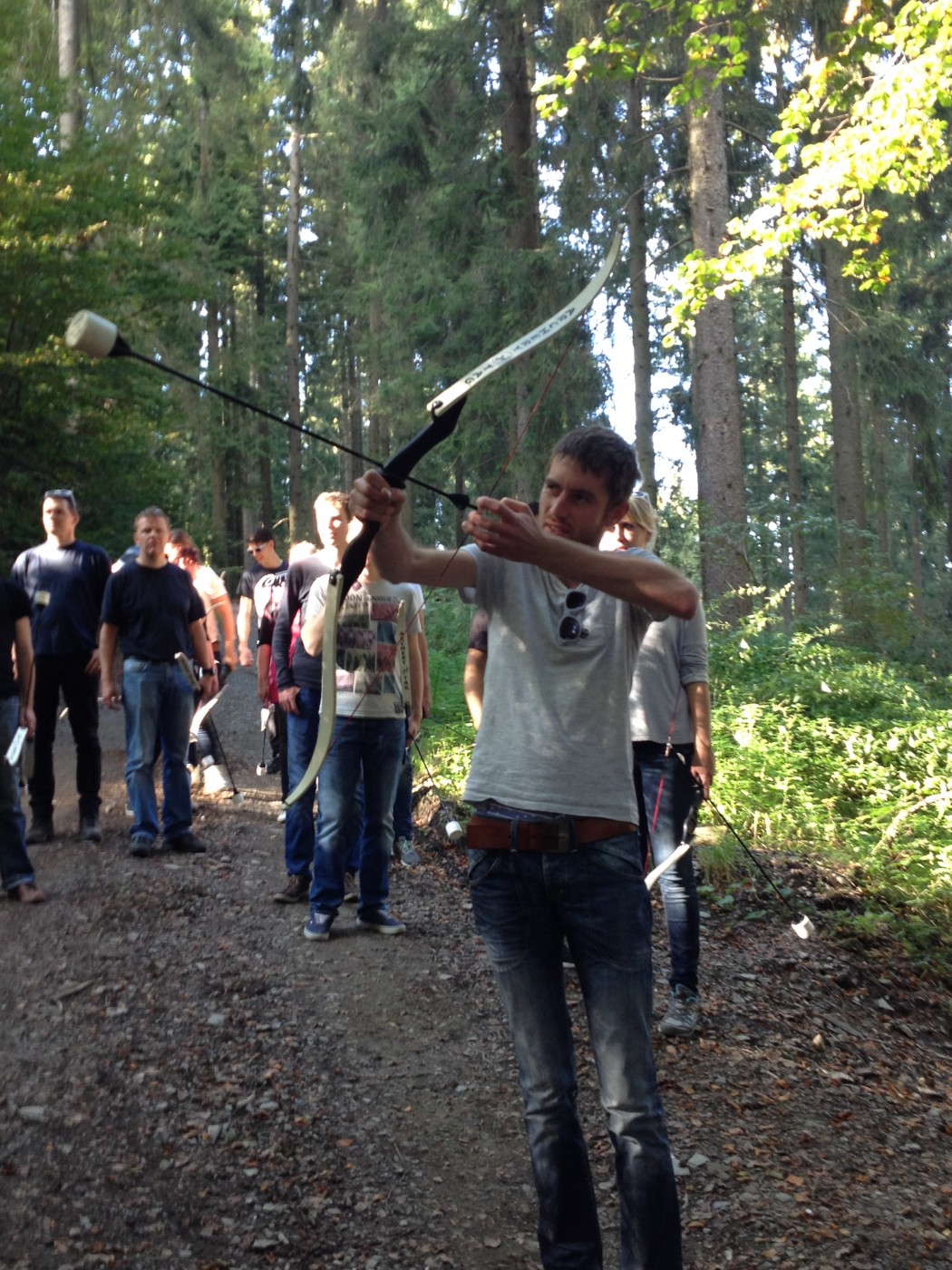 Er was een druk, breed programma opgesteld. In drie rondes kon er gekozen worden voor speedbuggyen, downhill steppen, ArcheryTag, boogschieten en knotshockey. Voor iedereen die nog niet helemaal wakker was, werd er in de ochtend boogschieten georganiseerd. Het doel van dit potje boogschieten was simpel: als eerste bij het laatste bord komen. Super fanatiek ging iedereen schieten, het is natuurlijk stiekem ook wel heel leuk om te winnen. Na het boogschieten werd de eerste ronde afgesloten met nog een potje knotshockey. Ook bij de andere activiteiten ging het er fanatiek aan toe. Het leuke aan speedbuggyen en downhillsteppen is dat je met de lift omhoog kan en dat je daarna lekker en op je eigen tempo naar beneden kan racen. Voor de ArcheryTaggers, was er dit keer een extra onderdeel toegevoegd. Tijdens de wandeling richting het veld, konden er extra levens gewonnen worden, dit door op verschillende targets te schieten. Super fanatiek ging iedereen te werk, want een goed begin is natuurlijk het halve werk. De extra levens konden uiteindelijk ingezet worden tijdens het potje ArcheryTag.