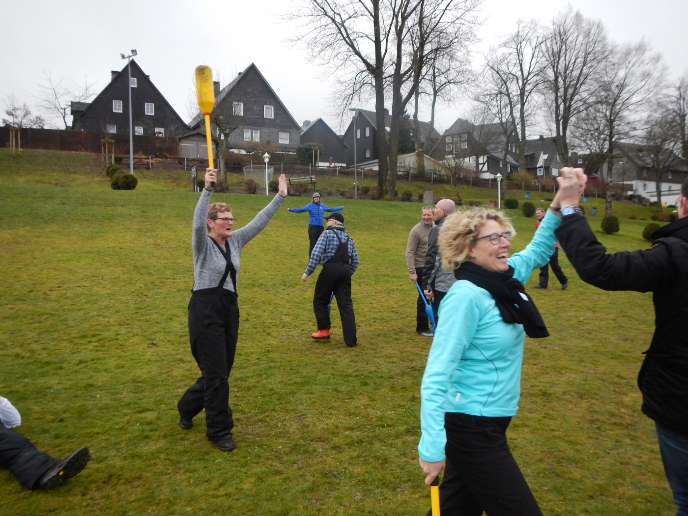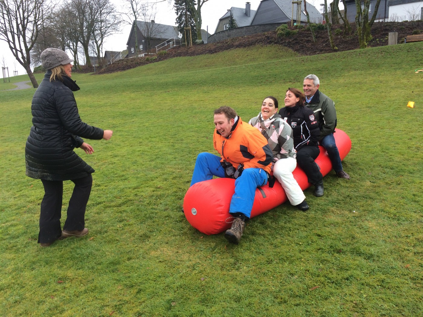 Op de tweede dag van het bedrijfsuitje Winterberg staat skiën, snowboarden en wandelen op het programma. De beginners gaan na een beetje oefenen al snel met instructeur Danielle in de lift. En suizen de pistes naar beneden. In de middag is het tijd voor een bezoek aan de bierbrouwerij en een mooie tocht in de huifkar. De echte die hards blijven nog lekker skiën op de pistes. Na alle actie is het tijd voor apres ski met de Gebroeders KO. Wat kunnen ze feesten zeg bij Reinders. Polonaise, spingen, dansen, het dak gaat er af. Heli, heli, helicopter, wat heb jij een lekker lijf en natuurlijk toeter op de waterscooter werd allemaal uit volle borst meegezongen. Daarna nog lekker gegeten bij de Dorf Alm en vroeg het bed in voor de spannende zeskamp op vrijdag!