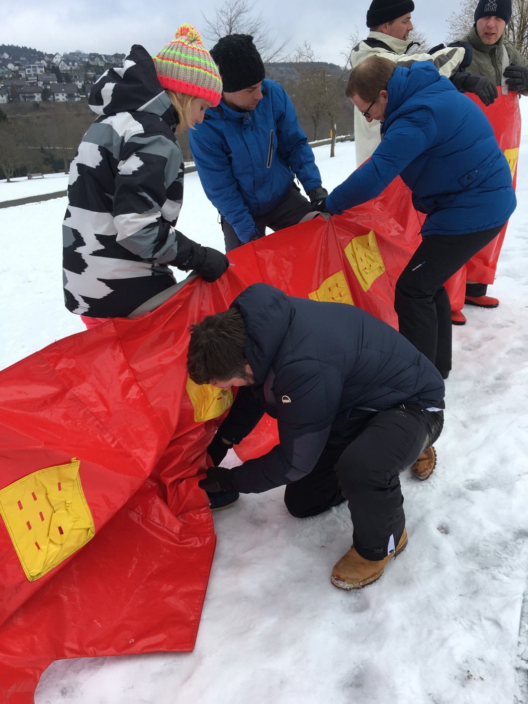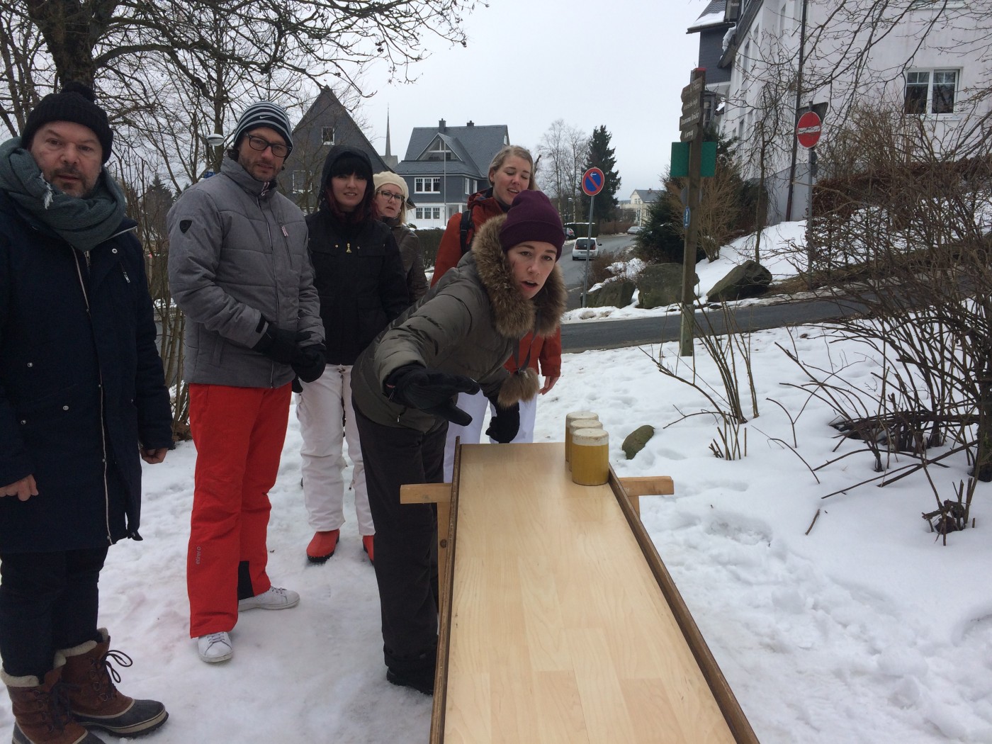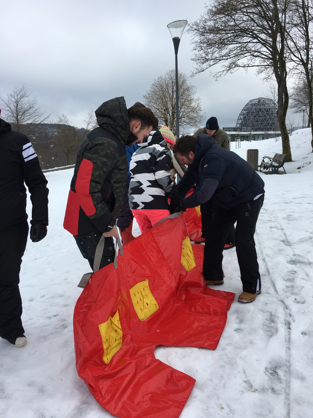 Tijdens dit weekend was ons al een beetje ter ore gekomen dat de zeskamp wel een discutabel puntje was. Daarom hadden we besloten om de zeskamp iets te veranderen en een combinatie te maken van Winterberg in beeld en een zeskamp. Na het indelen van de teams en een korte uitleg kon er van start gegaan worden. Ondanks de zeskamp met enige tegenzin ontvangen werd, was de concurrentiestrijd toch wel hevig tijdens de spellen in Winterberg in beeld.