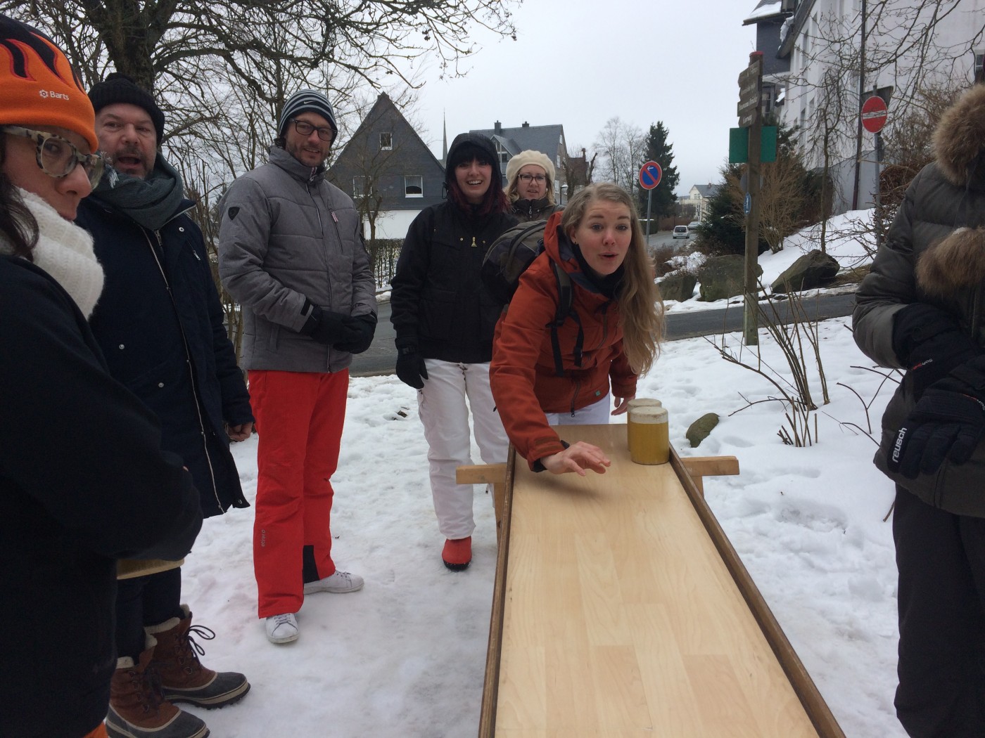 Na het inleveren van alle ski en board materialen stond er bij skihut Salletl een apres ski gepland. Na de nodige biertjes en een heerlijke punt pizza, is iedereen richting het hotel gegaan om zich op te frissen voor het avondeten en een avondje stappen in Winterberg.