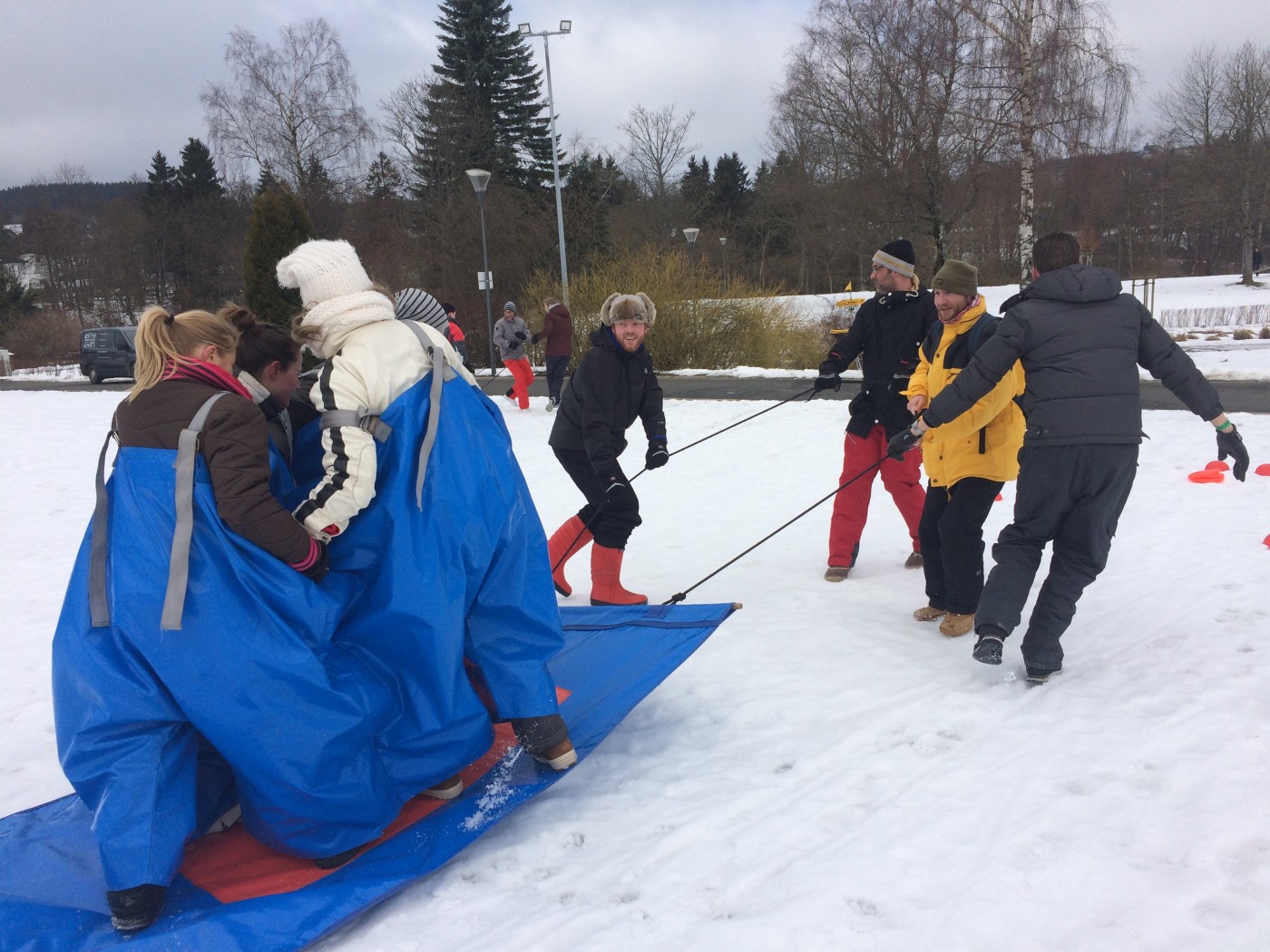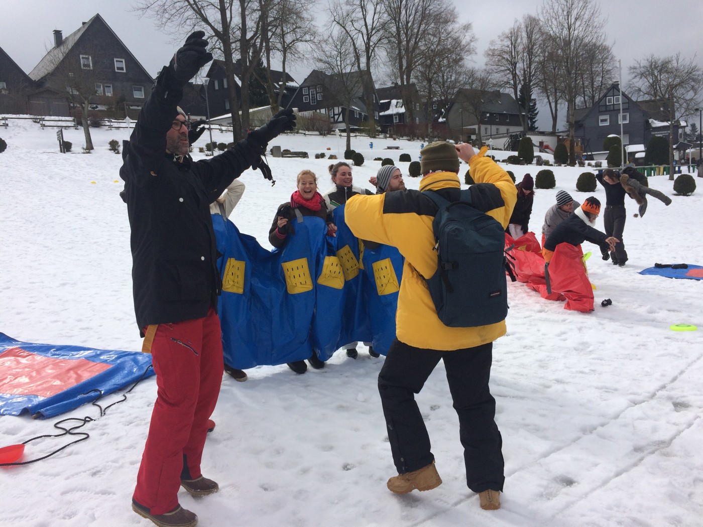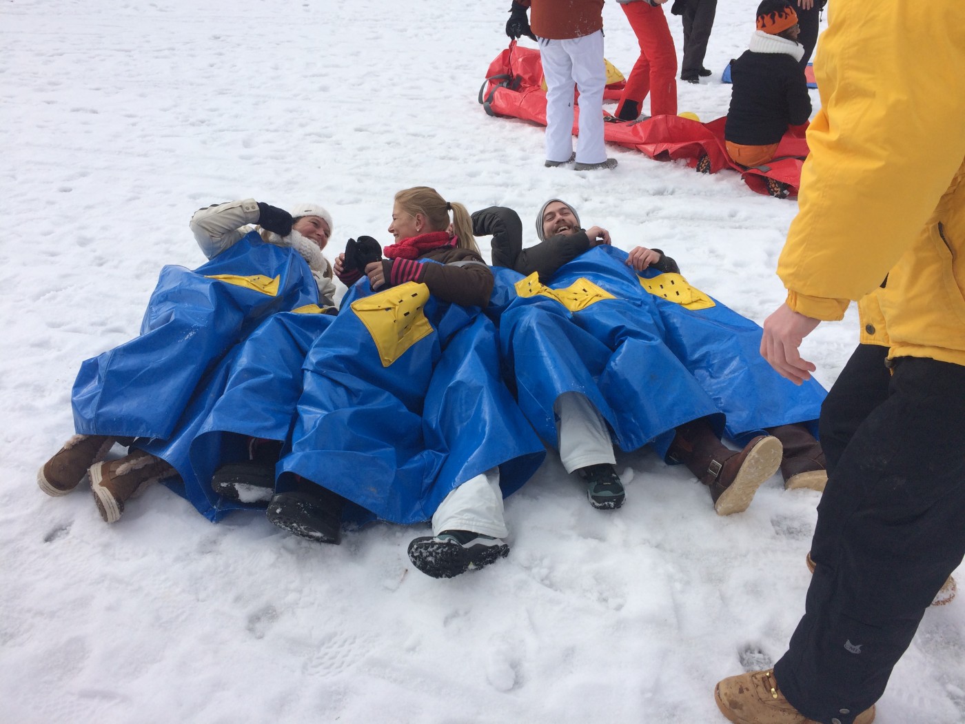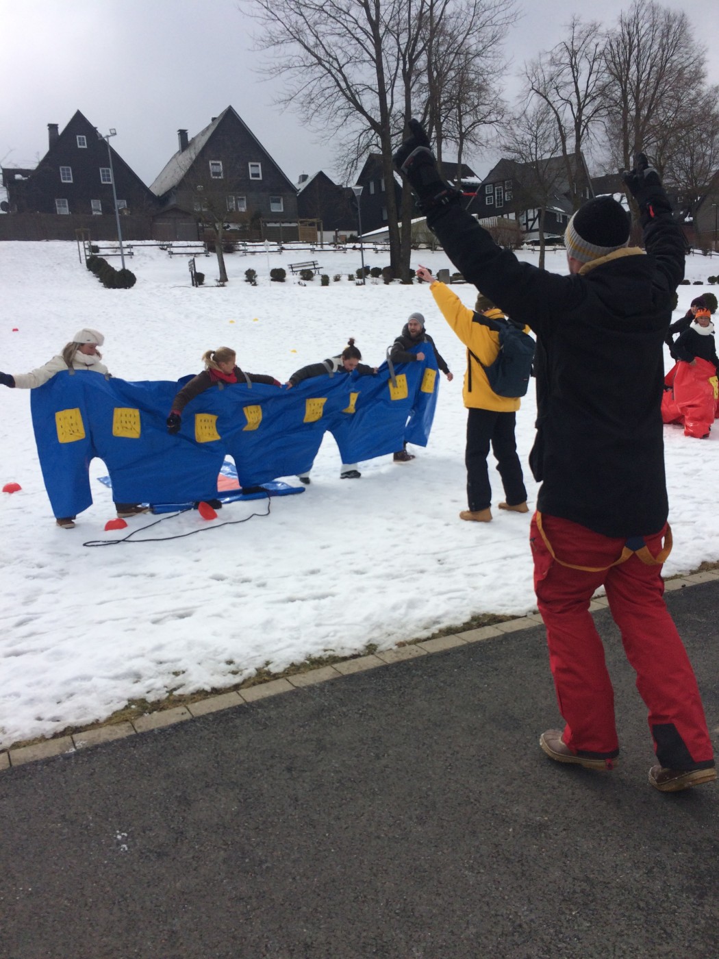 Als afsluiter van het spel was er een estafettebaan in de sneeuw. De foto’s speken voor zich……echt hilarisch!