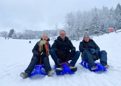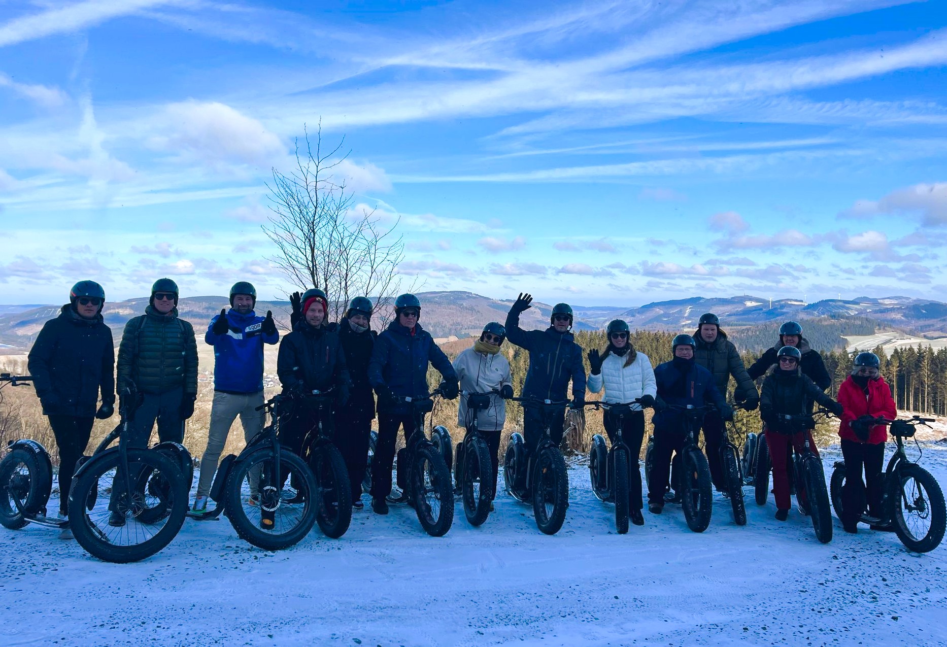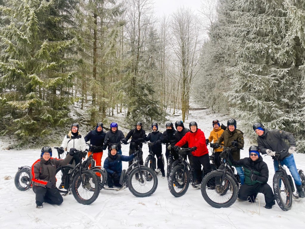 Voor de niet-skiërs was er een uitgebreid alternatief programma. Ze konden kiezen uit sneeuwschoenwandelingen, rodelen, een sfeervolle arrensleetocht rond Winterberg, een avontuurlijke rit op onze FAT MAX e-steps door het Sauerland of een bezoek aan een lokale bierbrouwerij in de middag.