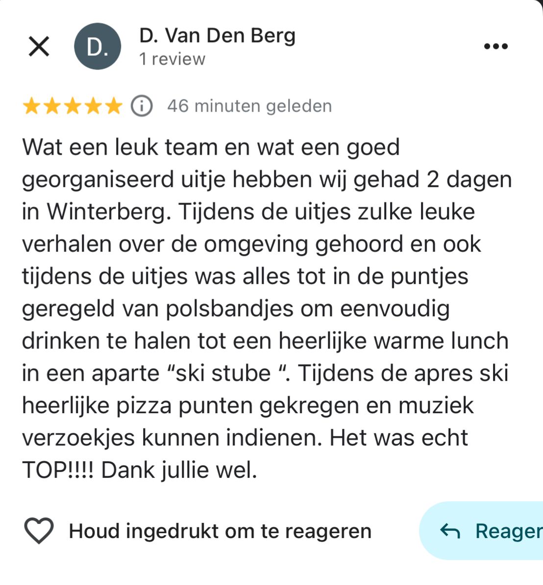 Na een actieve middag barstte de après-ski los! Er werd gedanst en gezongen, en wij verrasten de groep met rondgebrachte pizza’s en verzoeknummers. De sfeer zat er goed in.