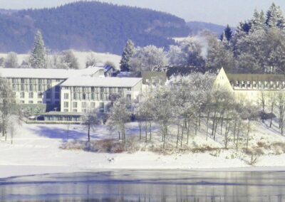 Ons op maat gemaakte driedaagse wintersportprogramma in Willingen was speciaal samengesteld voor Hach. De gasten verbleven in het comfortabele 4-sterren Welcome Hotel Meschede, prachtig gelegen aan het stuwmeer de Hennesee in het Sauerland. Dankzij de ruime beschikbaarheid van kamers kon iedere medewerker genieten van een eigen kamer.