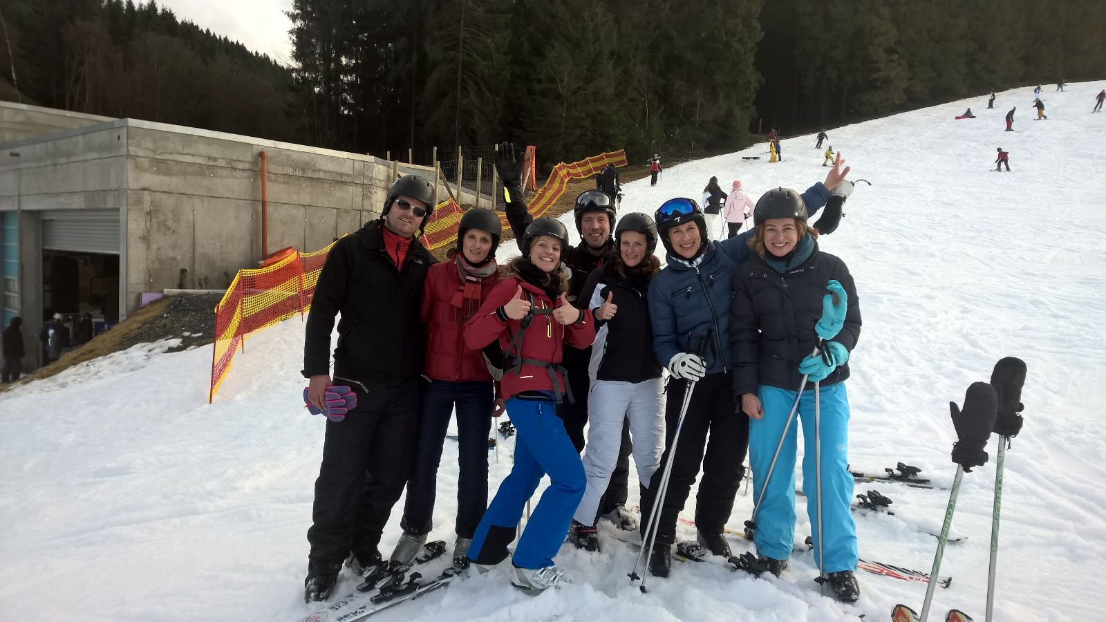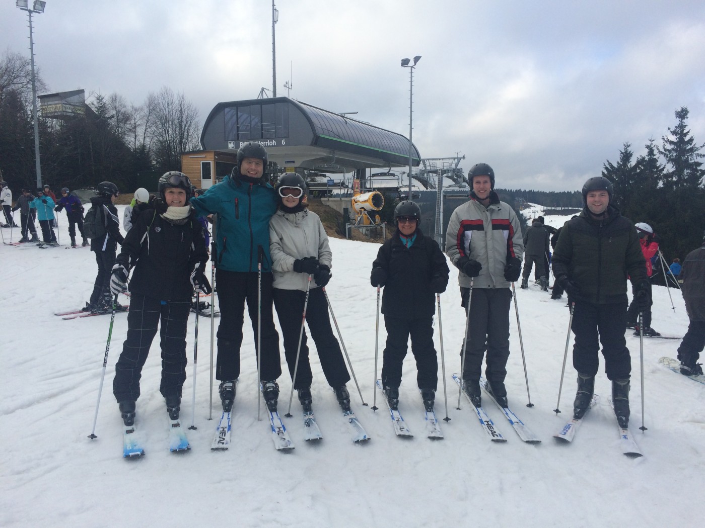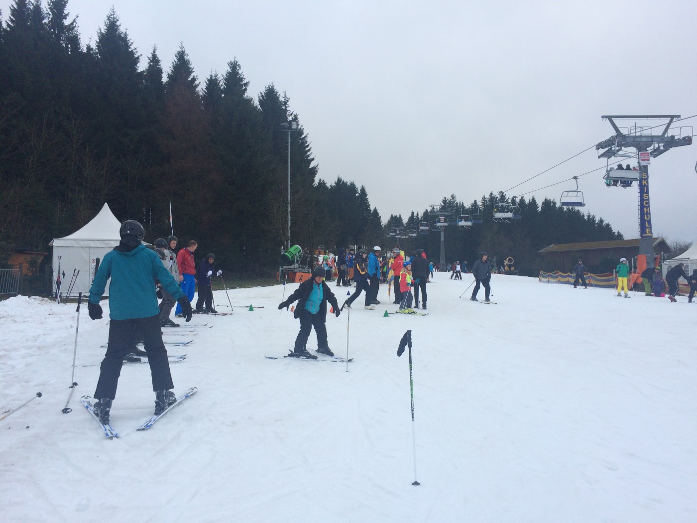 Om 12 uur staat de grote dubbeldekker bus van Besseling klaar bij het SNS kantoor voor het PV uitje naar Winterberg. Bij aankomst lekker een drankje drinken aan de bar en genieten van het grote Welcome buffet in het restaurant, na het eten nog even een frisse neus halen met de fakkeltocht. Een mooie stoet van brandende fakkels leidt ons naar de schnaps en het kampvuur met Glühwein. Het was een heerlijke avond voor de fakkelwandeling. Nog een afsluitend drankje in de bar en dan lekker naar bed om de volgende dag weer fris en fruitig klaar te staan voor de skidag.