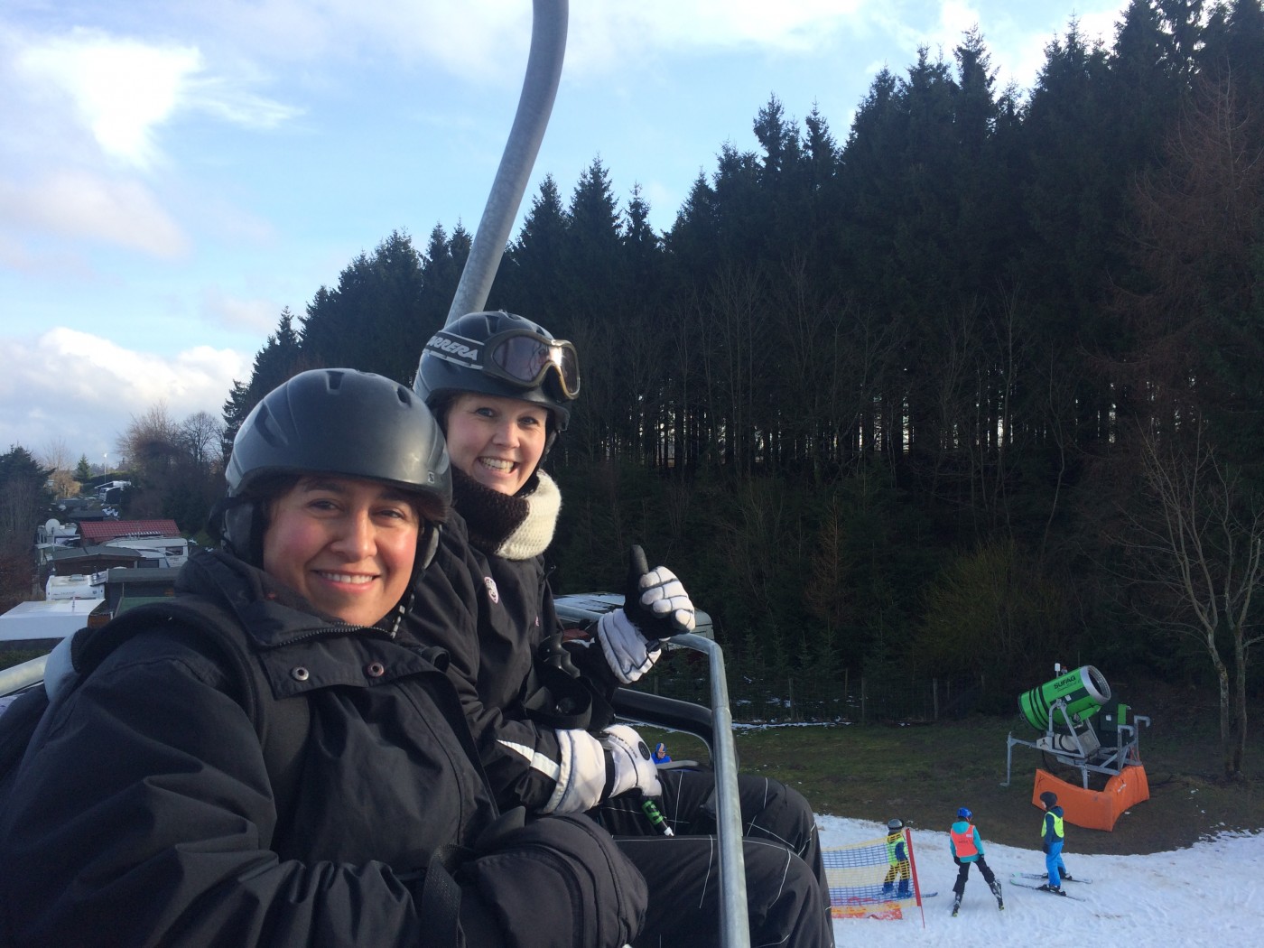 De volgende ochtend stond iedereen weer klaar voor de laatste meters op de ski. Sommige nog met les en anderen gingen al lekker zelf de piste af. Een paar fanatiekelingen gingen Winterberg verkennen met Winterberg in beeld. Bierpul schuiven, actie foto’s, veel foto’s van de bank en hoge toren bouwen.