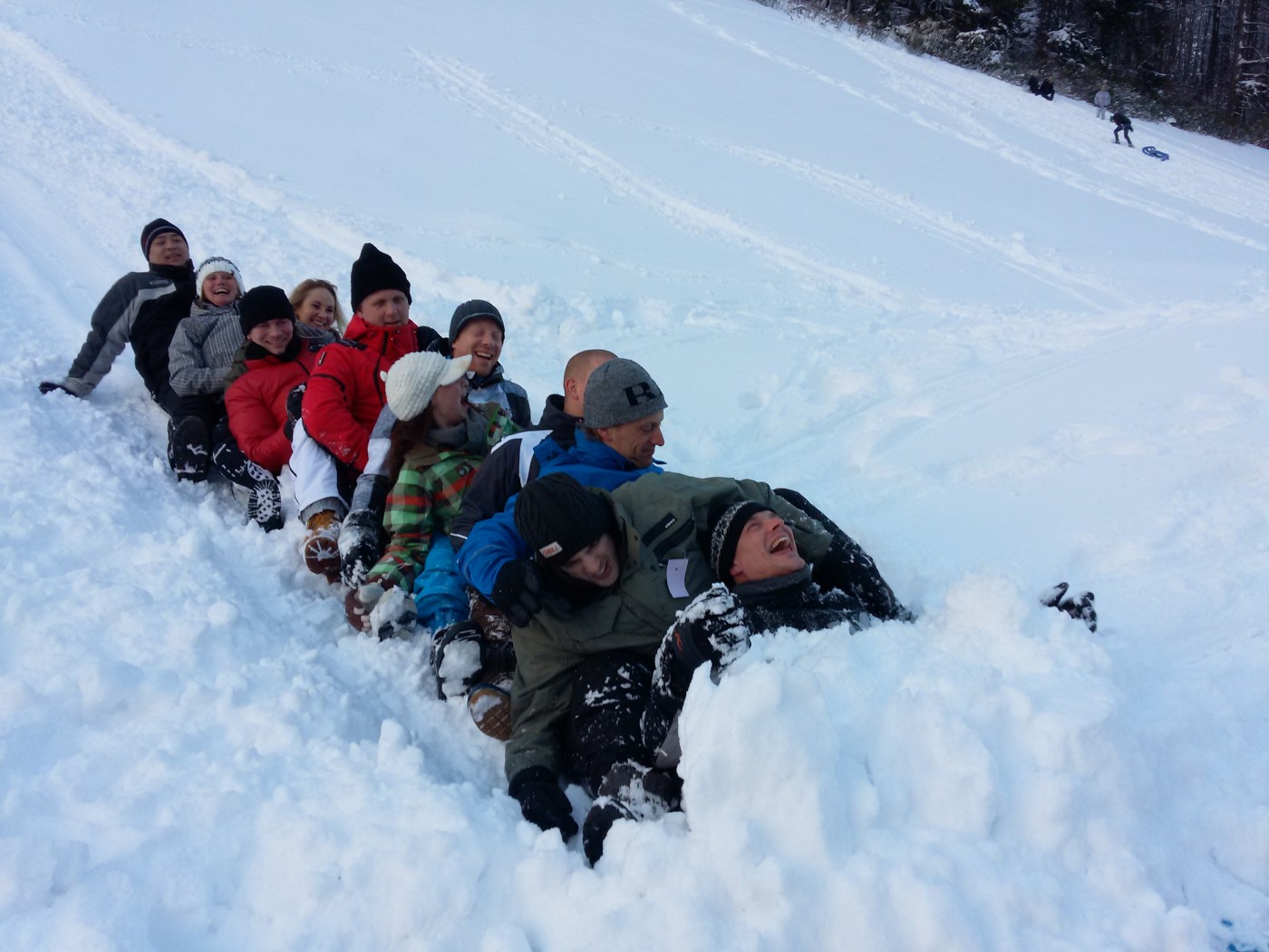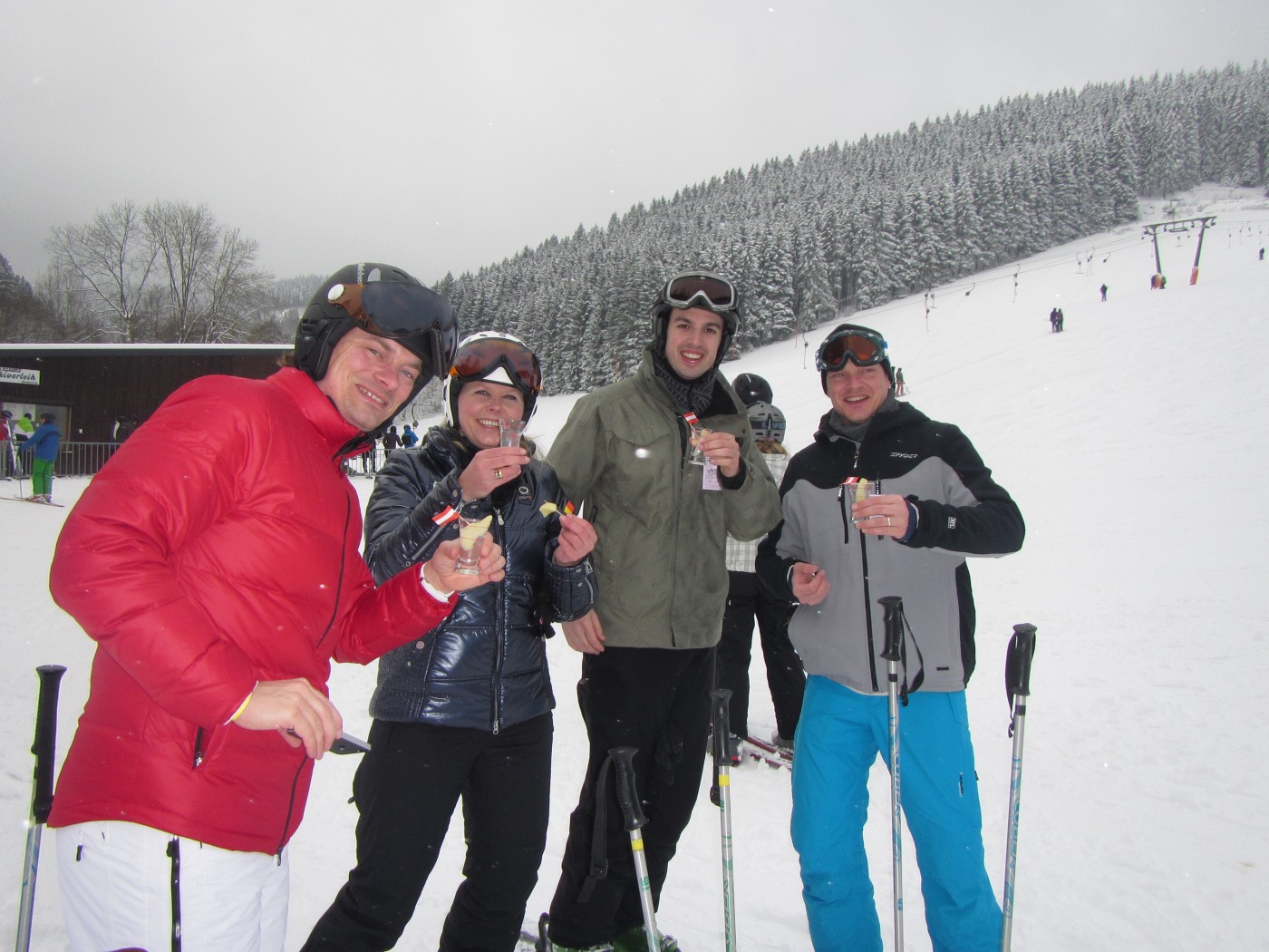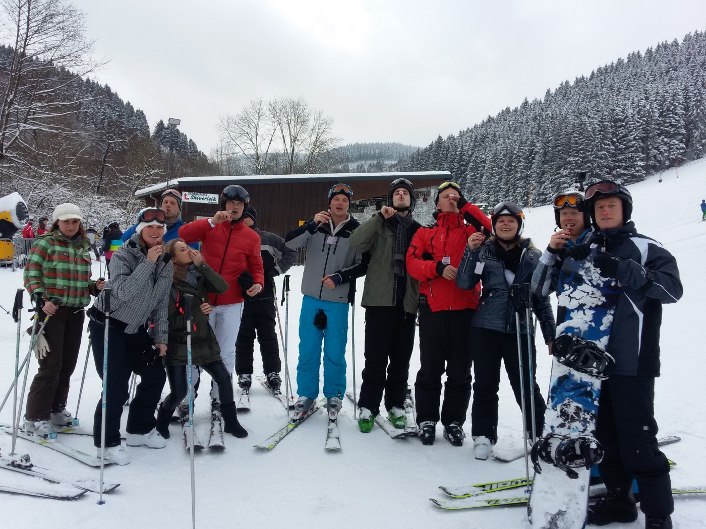 Toch is iedereen de volgende ochtend weer fit (toch?!) en klaar voor een mooie skidag. Door de enorme drukte in Winterberg wordt al snel besloten om naar een ander gebiedje te rijden 15 kilometer van Winterberg; de Hohe Lied. Met de verse sneeuw die ’s nachts gevallen is konden de medewerkers van de BT Groep daar hun hart ophalen op de piste en voor sommigen zelfs off-piste!