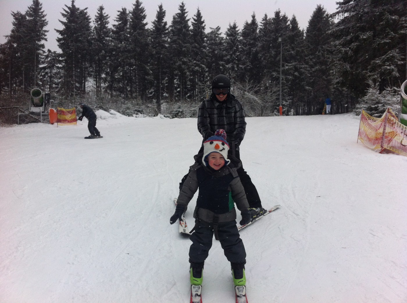 Op zaterdag tijdens het skiën en snowboarden sneeuwde het de hele dag licht en zorgde de witte bomen voor een echt winters gevoel. Nog niet het hele gebied was open maar ook de mensen die het al konden hebben heerlijk geskied en waren blij verrast. De beginners hebben samen met Cleo (snowboardles) en Cynthia (skiles) veel geoefend en hun eerste afdalingen gemaakt.