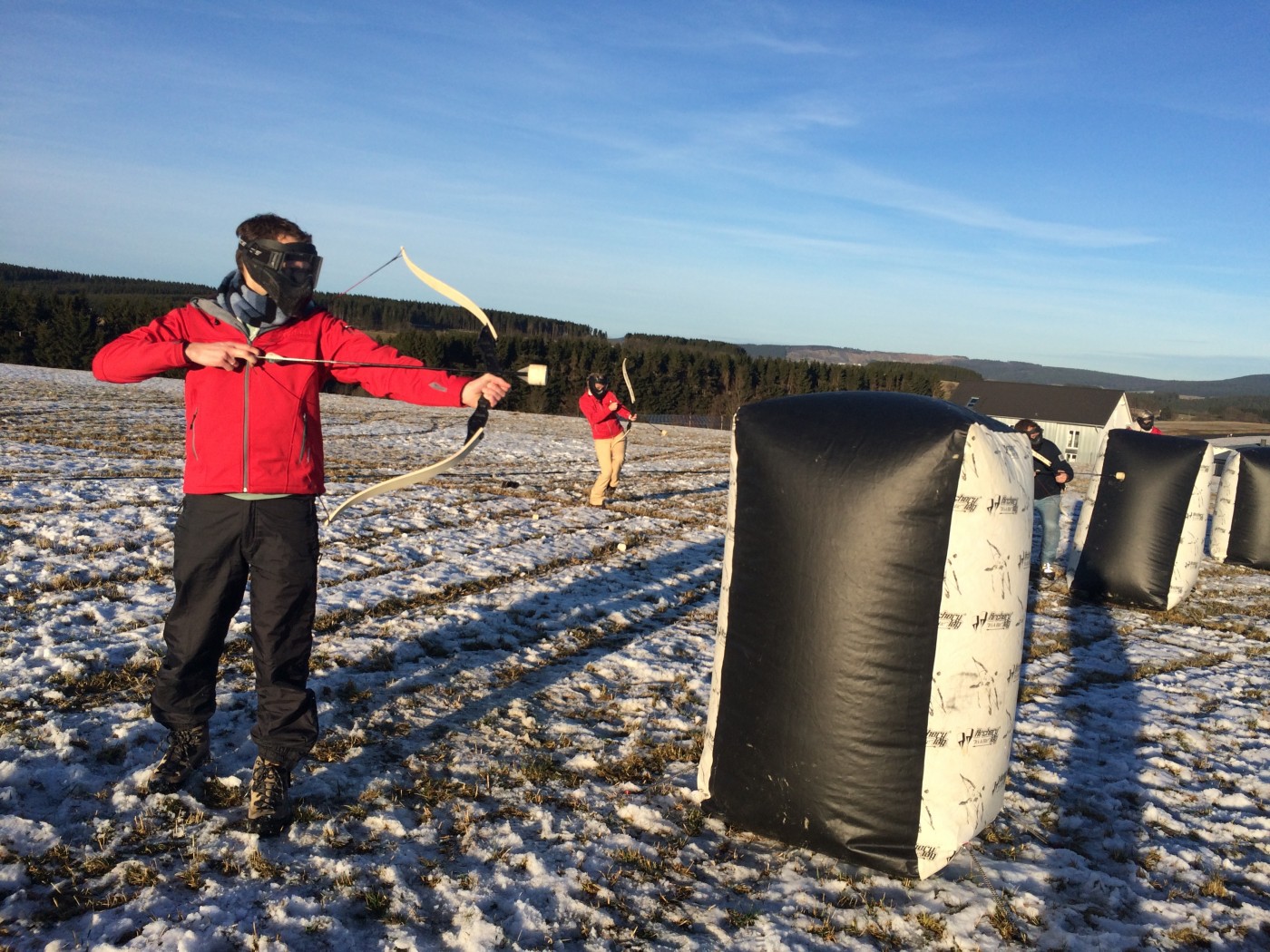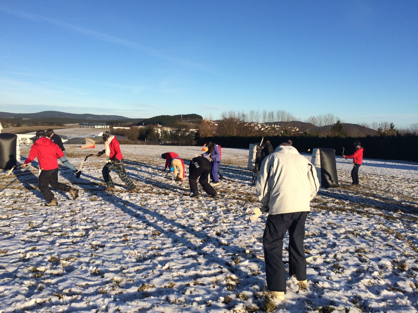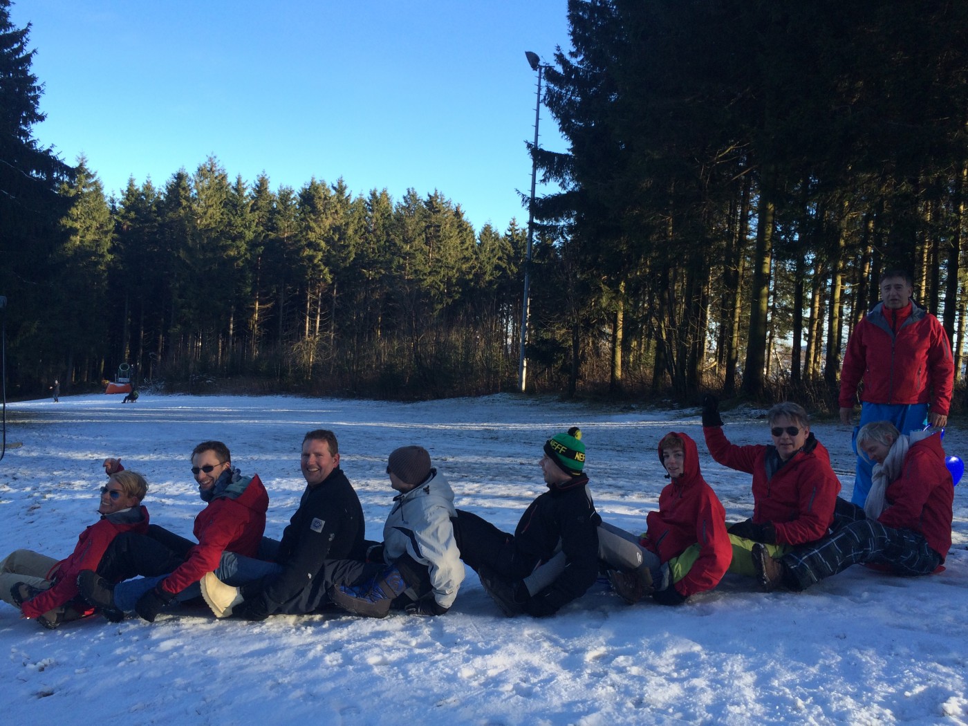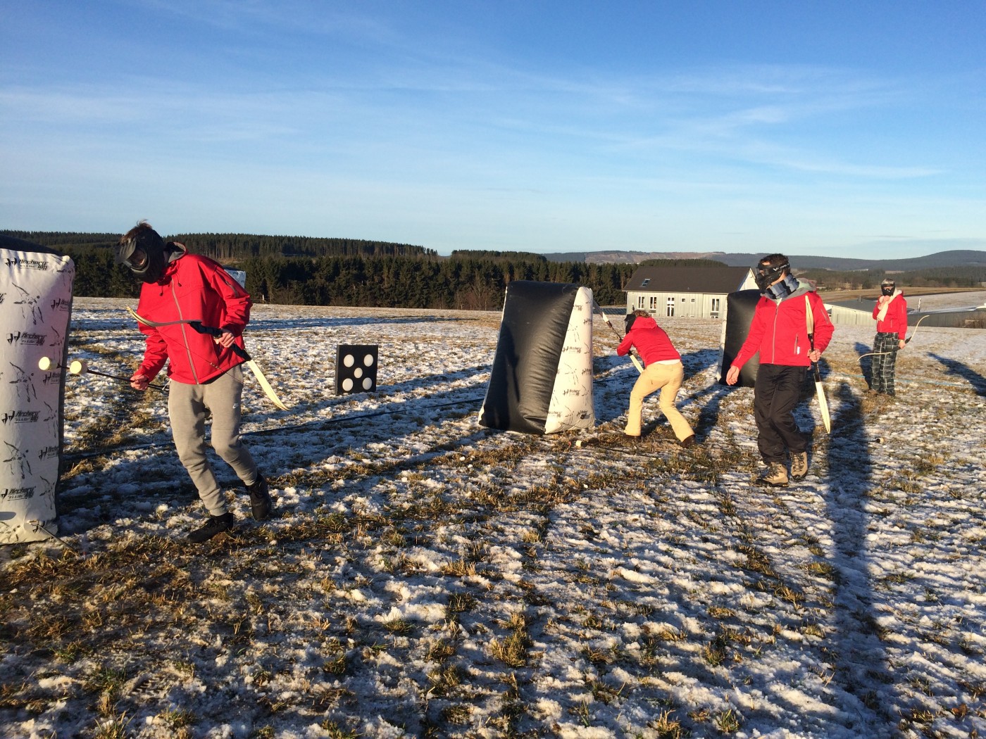 Na de lunch nemen sommige toch nog een extra lesje bij Jop of Sofia en de anderen gaan mee op een mooie wandeltocht naar de schans. Hier heb je een geweldig uitzicht over heel Winterberg en de Bobbaan. Over de piste gaan we natuurlijk niet terug wandelen want we hebben de bilslee mee. Tijd voor de grote bilslee wedstrijd. Mario lag eerst op kop maar werd toch ingehaald door de slee profi Renate. Maar zij kon later weer terug gepakt worden bij het spannende ArcheryTag. Eerst waren Paul en Robbie de klos om als aas te gaan staan maar gelukkig waren zij goed in pijlen vangen en mochten zij in no time ook weer schieten op hun collega’s. Een paar spannende potjes Archerytag gespeeld en daarna tijd voor de apres ski.
