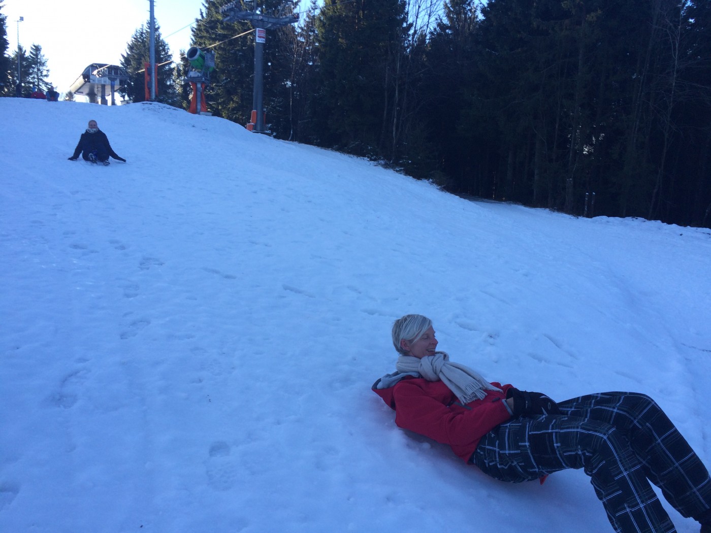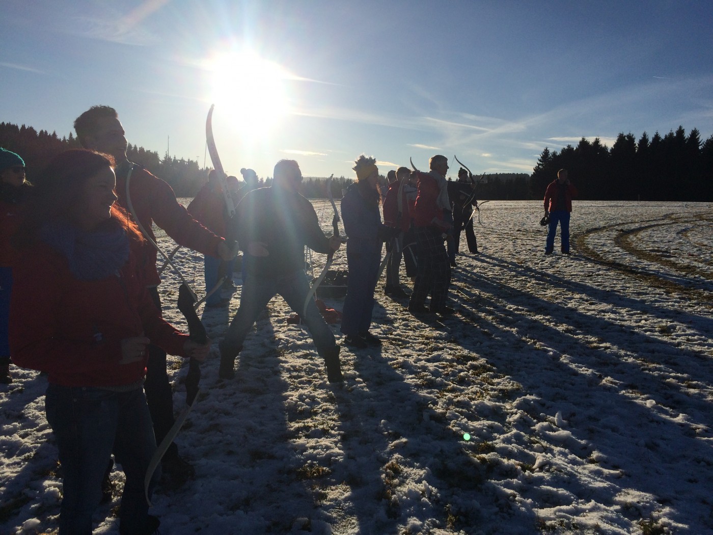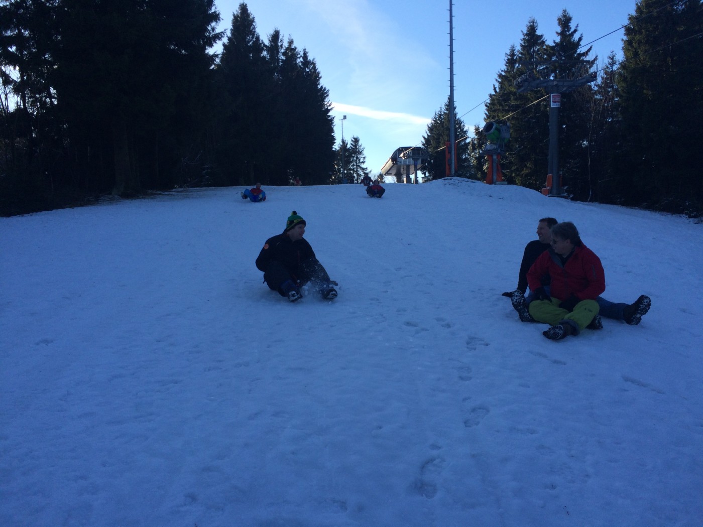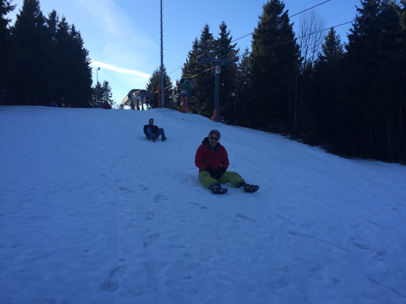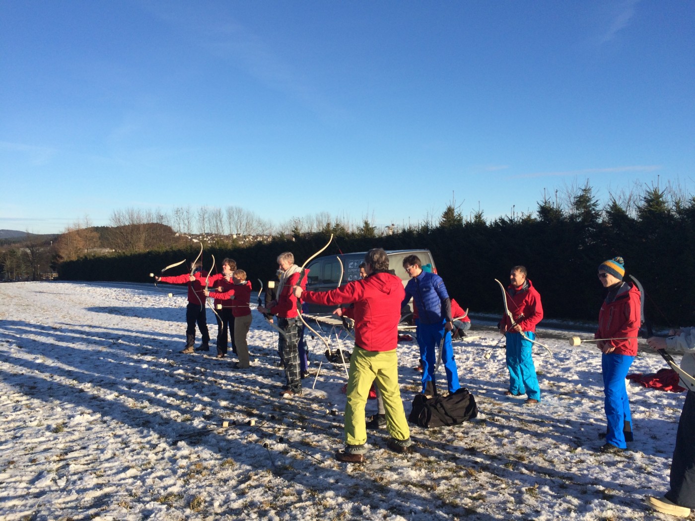 Na de lunch nemen sommige toch nog een extra lesje bij Jop of Sofia en de anderen gaan mee op een mooie wandeltocht naar de schans. Hier heb je een geweldig uitzicht over heel Winterberg en de Bobbaan. Over de piste gaan we natuurlijk niet terug wandelen want we hebben de bilslee mee. Tijd voor de grote bilslee wedstrijd. Mario lag eerst op kop maar werd toch ingehaald door de slee profi Renate. Maar zij kon later weer terug gepakt worden bij het spannende ArcheryTag. Eerst waren Paul en Robbie de klos om als aas te gaan staan maar gelukkig waren zij goed in pijlen vangen en mochten zij in no time ook weer schieten op hun collega’s. Een paar spannende potjes Archerytag gespeeld en daarna tijd voor de apres ski.