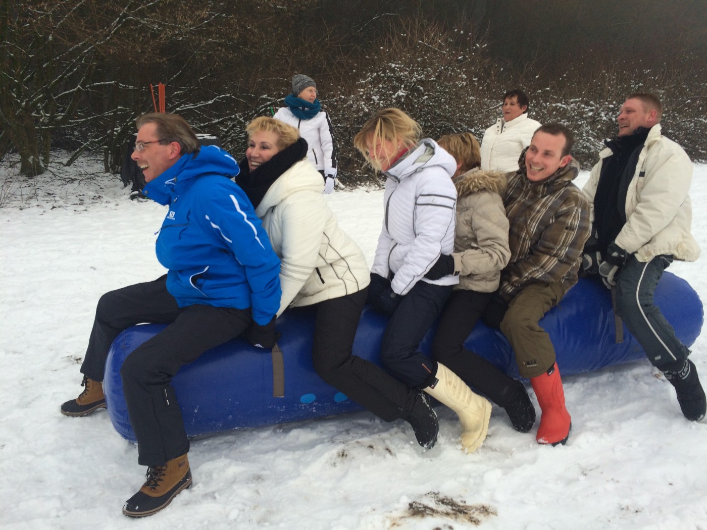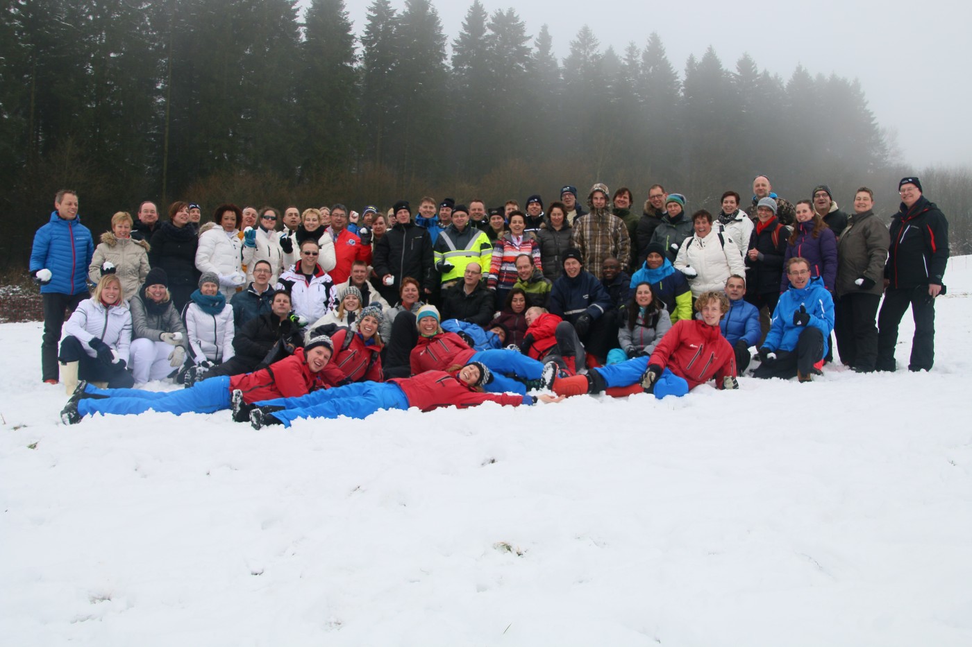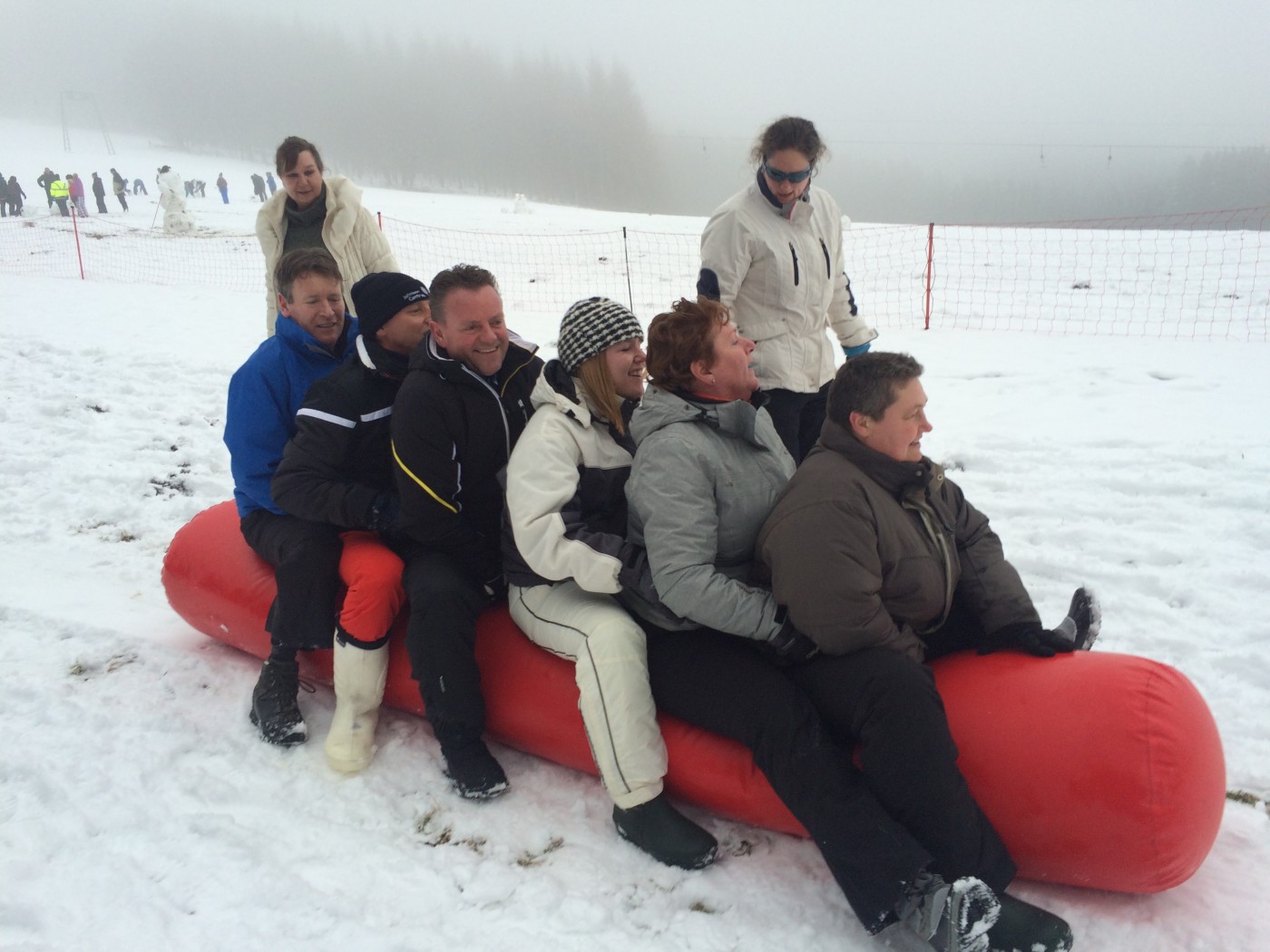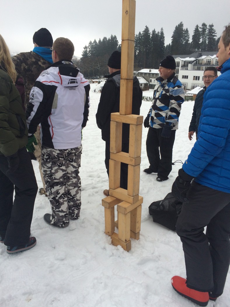 De volgende morgen stond iedereen weer fris en fruitig klaar voor de sneeuwzeskamp. Nog even rollen en je uitleven in de sneeuw voordat je de bus ingaat. En dat hebben ze gedaan. iedereen was enorm fanatiek. Er zijn mega sneeuwpoppen gebouwd, er werd aan Valentijnsdag gedacht en er zijn records verbroken met bierpul schuiven. Een gezellige afsluiting van een volledig verzorgd bedrijfsfeest Winterberg.