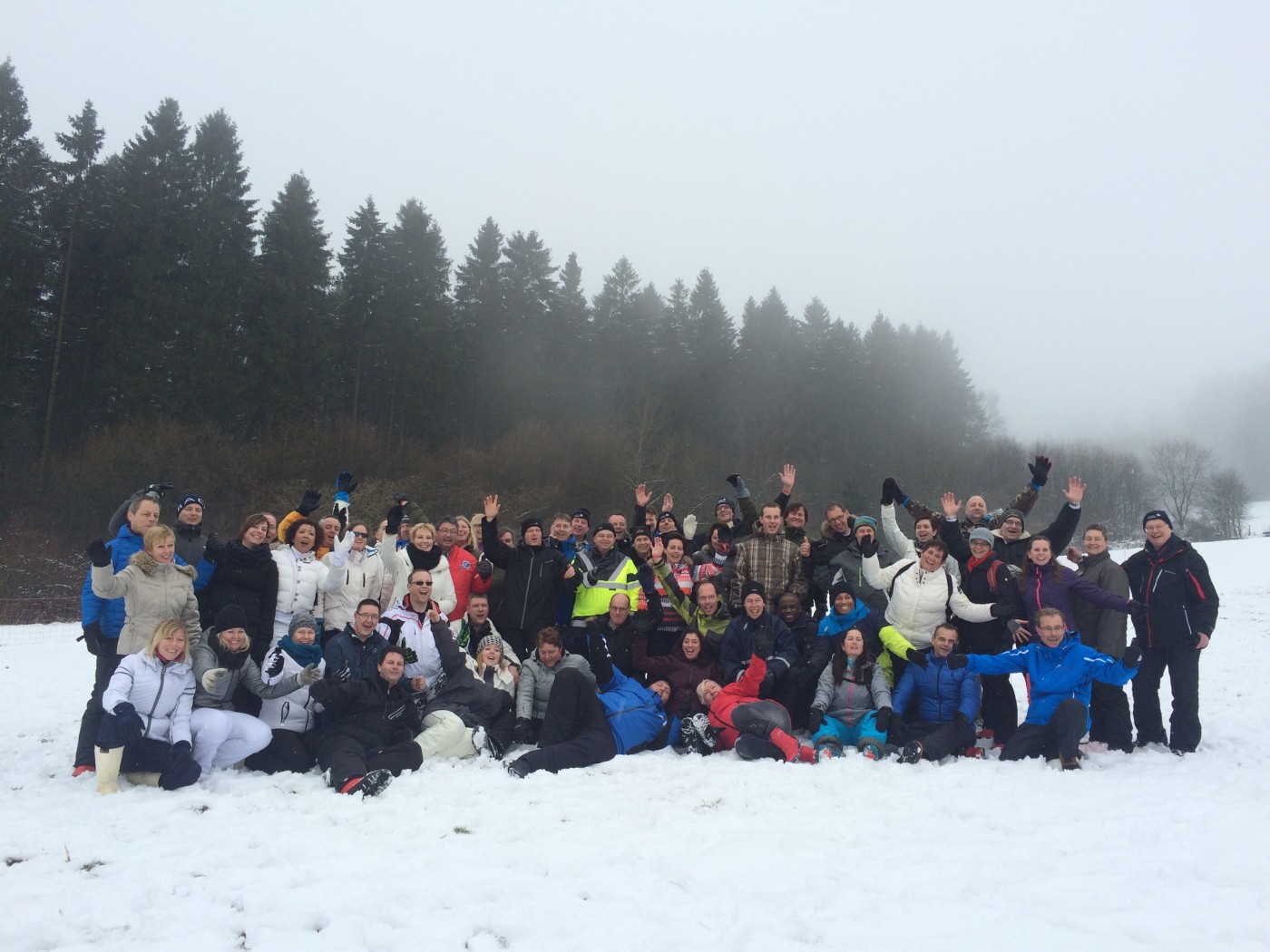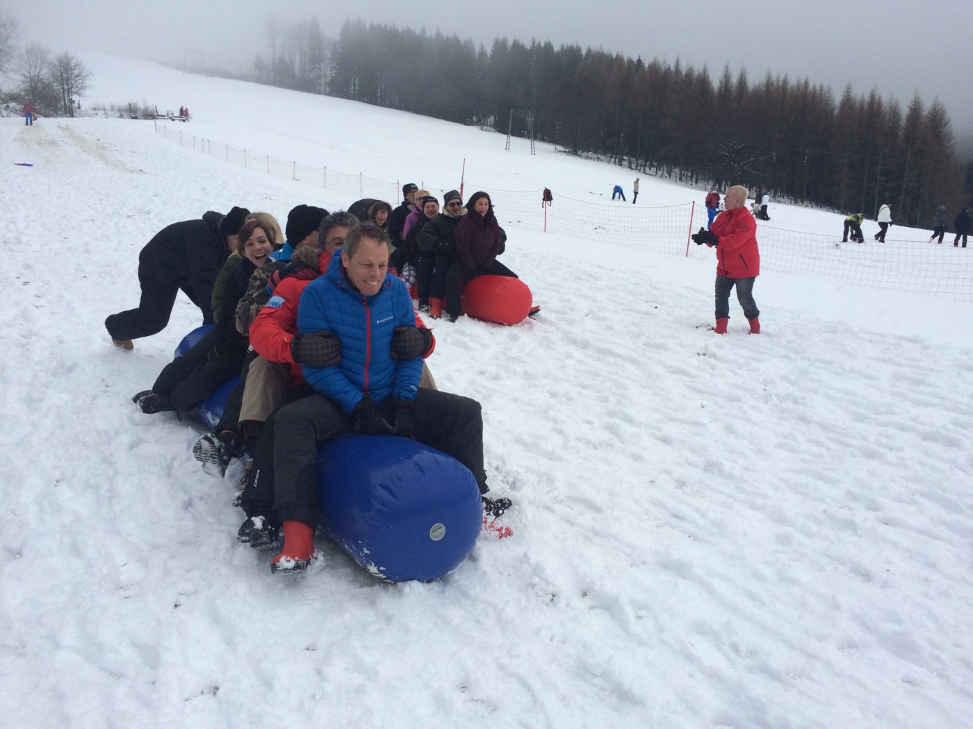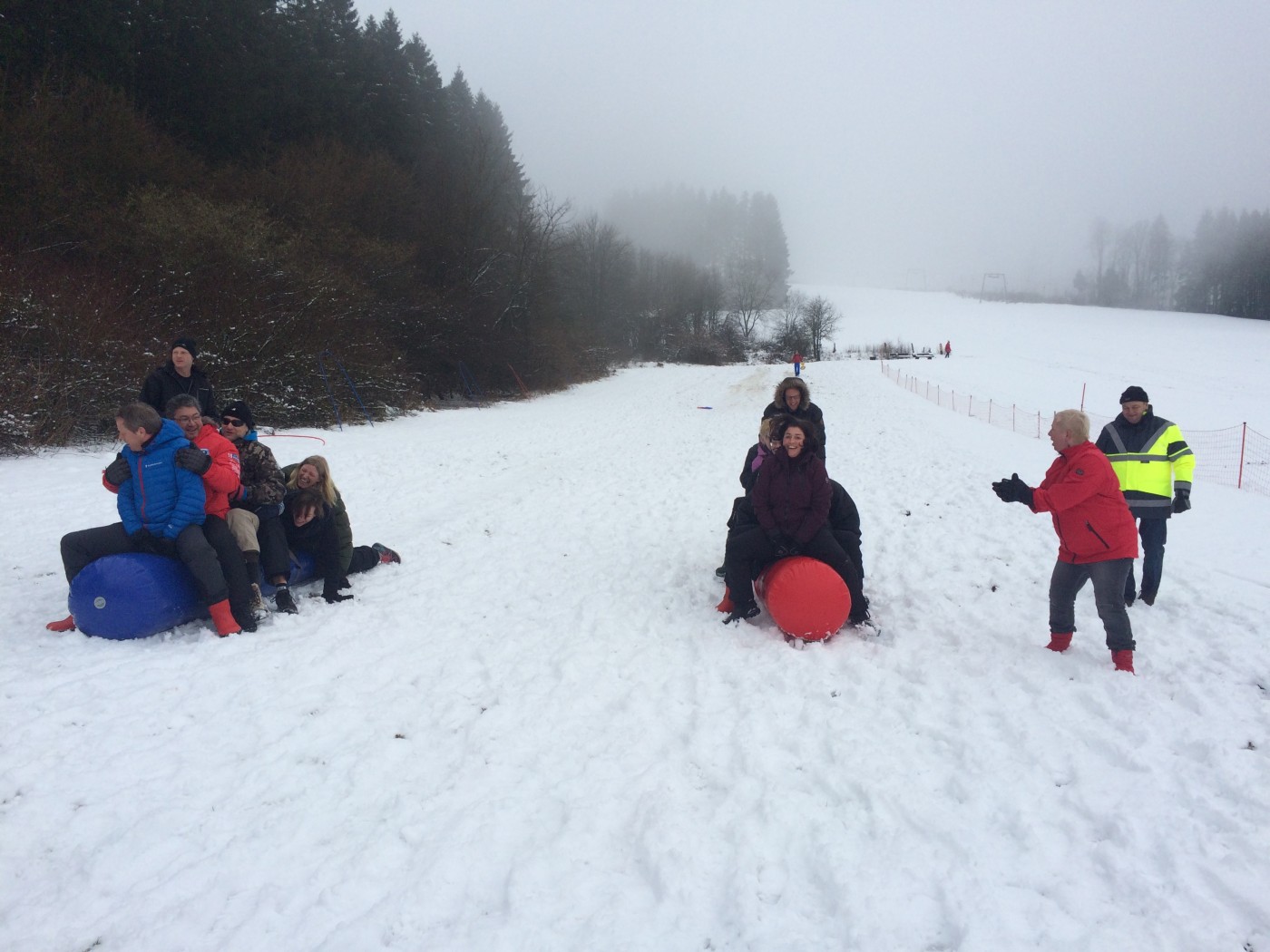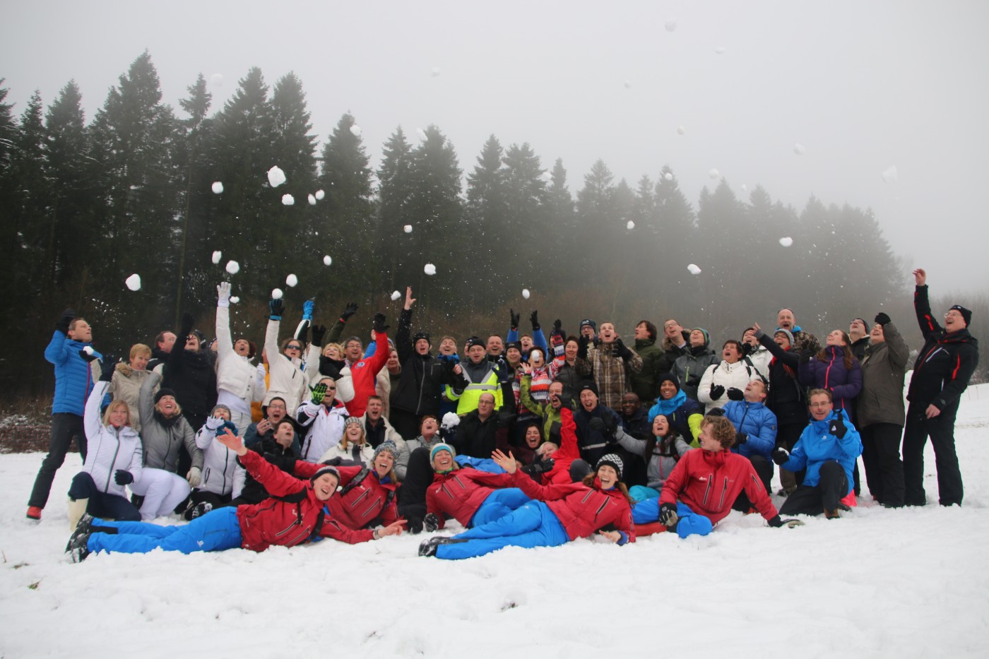 De volgende morgen stond iedereen weer fris en fruitig klaar voor de sneeuwzeskamp. Nog even rollen en je uitleven in de sneeuw voordat je de bus ingaat. En dat hebben ze gedaan. iedereen was enorm fanatiek. Er zijn mega sneeuwpoppen gebouwd, er werd aan Valentijnsdag gedacht en er zijn records verbroken met bierpul schuiven. Een gezellige afsluiting van een volledig verzorgd bedrijfsfeest Winterberg.