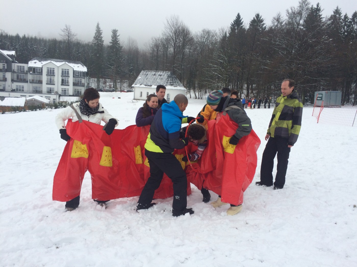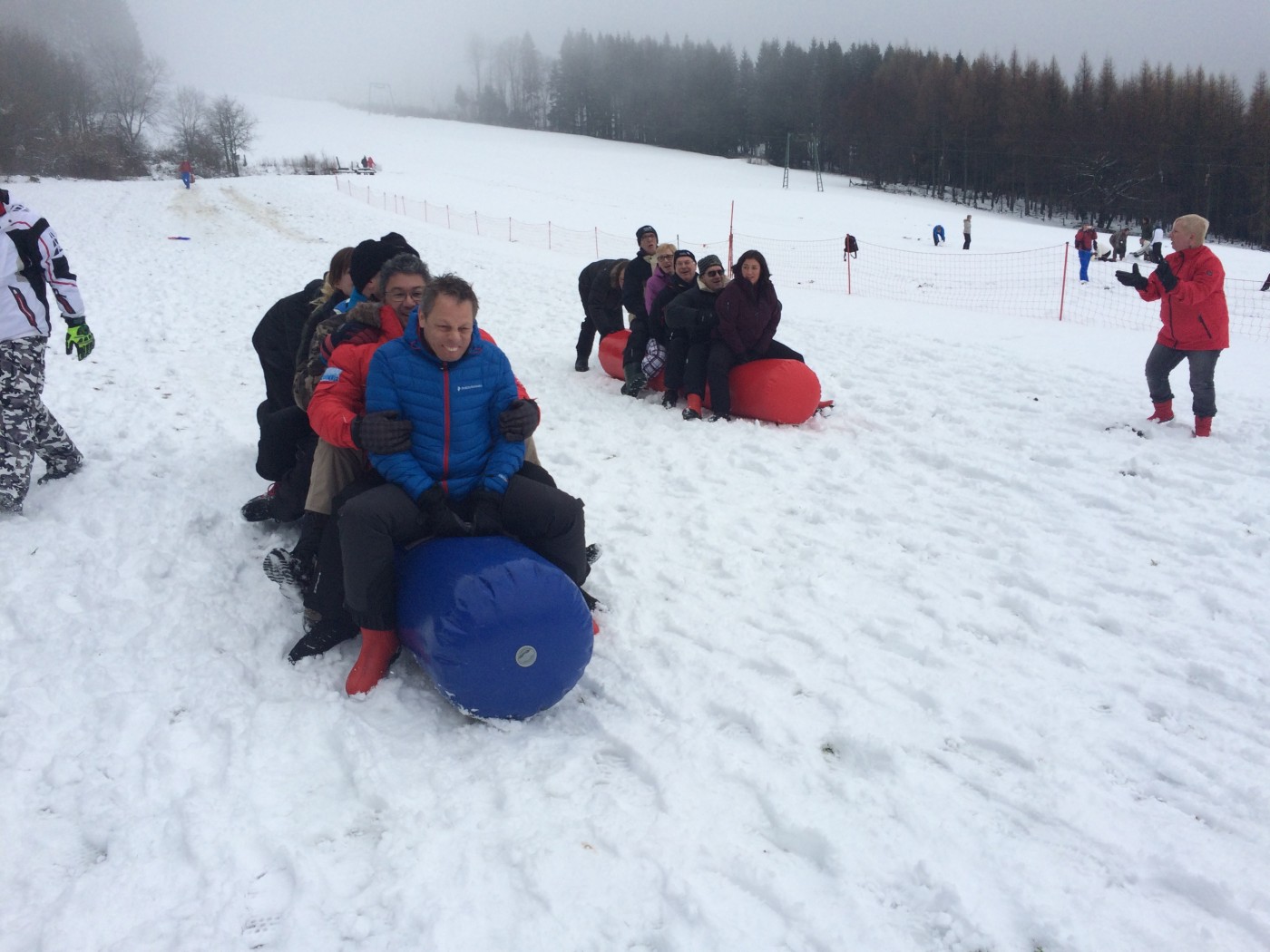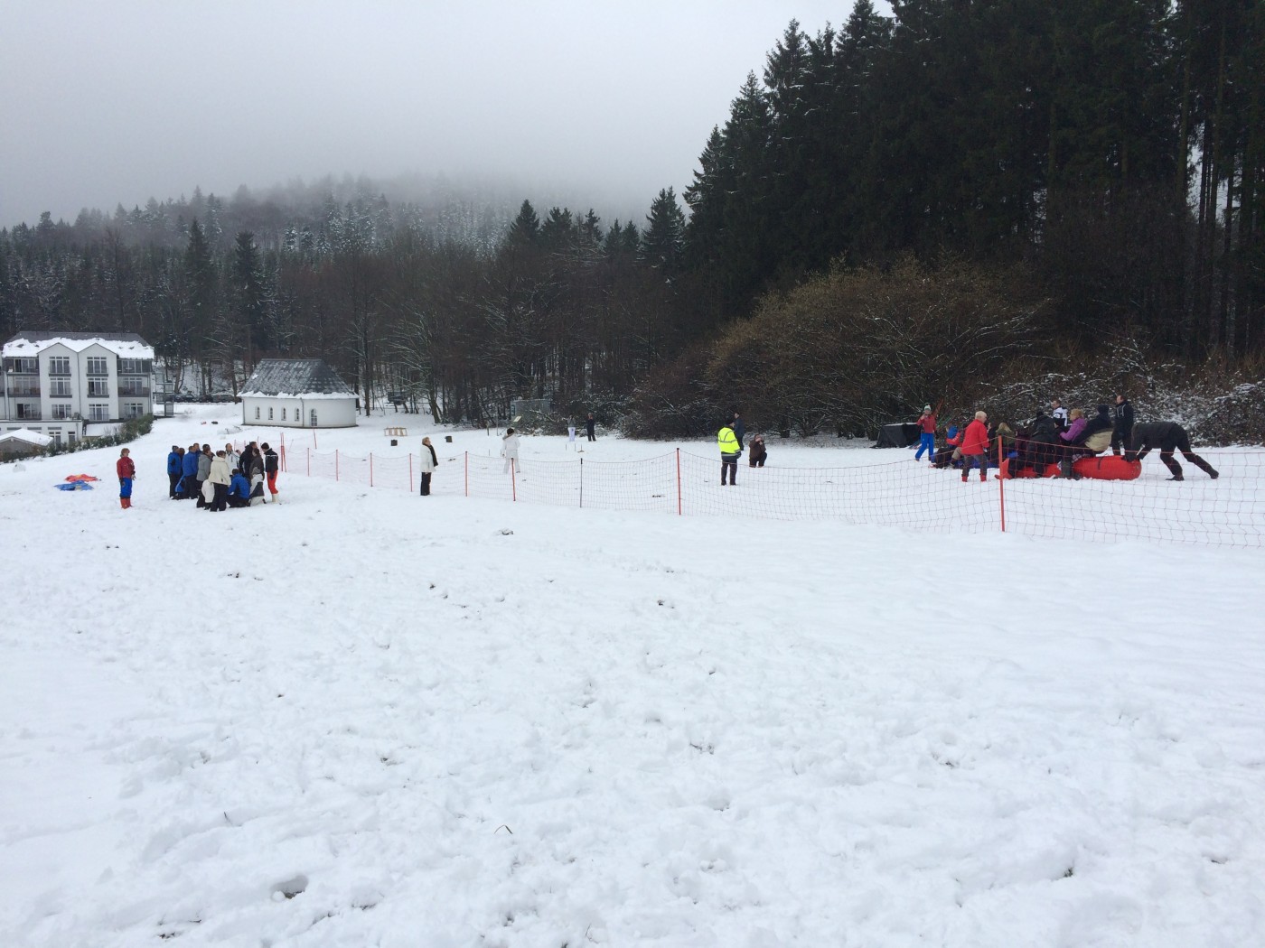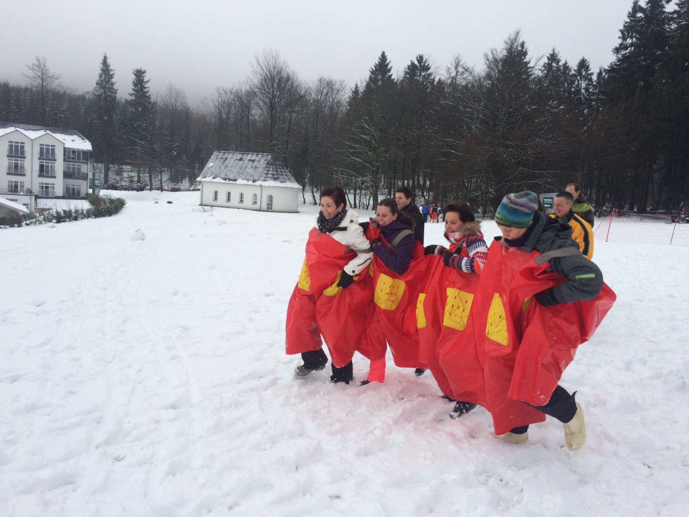 De volgende morgen stond iedereen weer fris en fruitig klaar voor de sneeuwzeskamp. Nog even rollen en je uitleven in de sneeuw voordat je de bus ingaat. En dat hebben ze gedaan. iedereen was enorm fanatiek. Er zijn mega sneeuwpoppen gebouwd, er werd aan Valentijnsdag gedacht en er zijn records verbroken met bierpul schuiven. Een gezellige afsluiting van een volledig verzorgd bedrijfsfeest Winterberg.