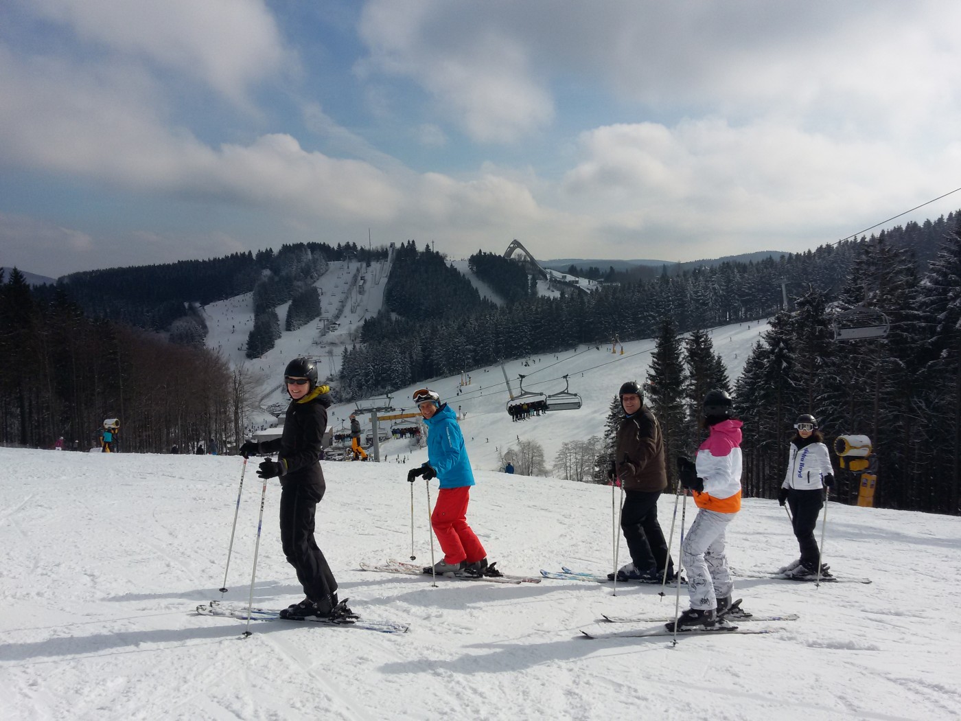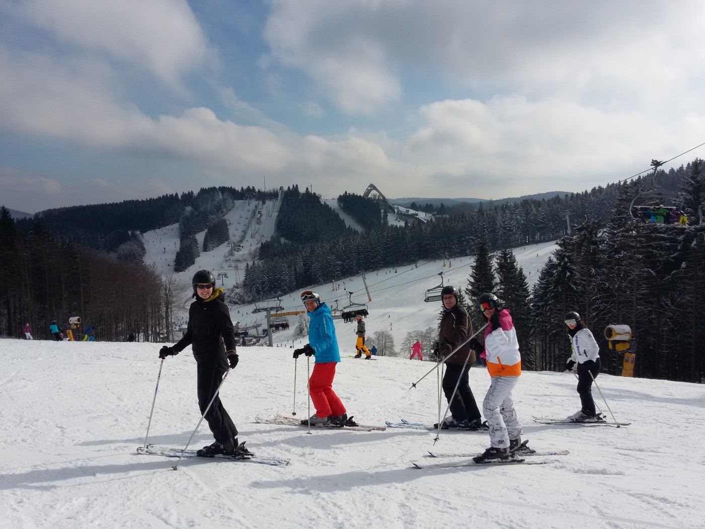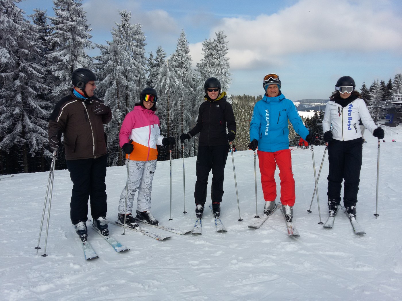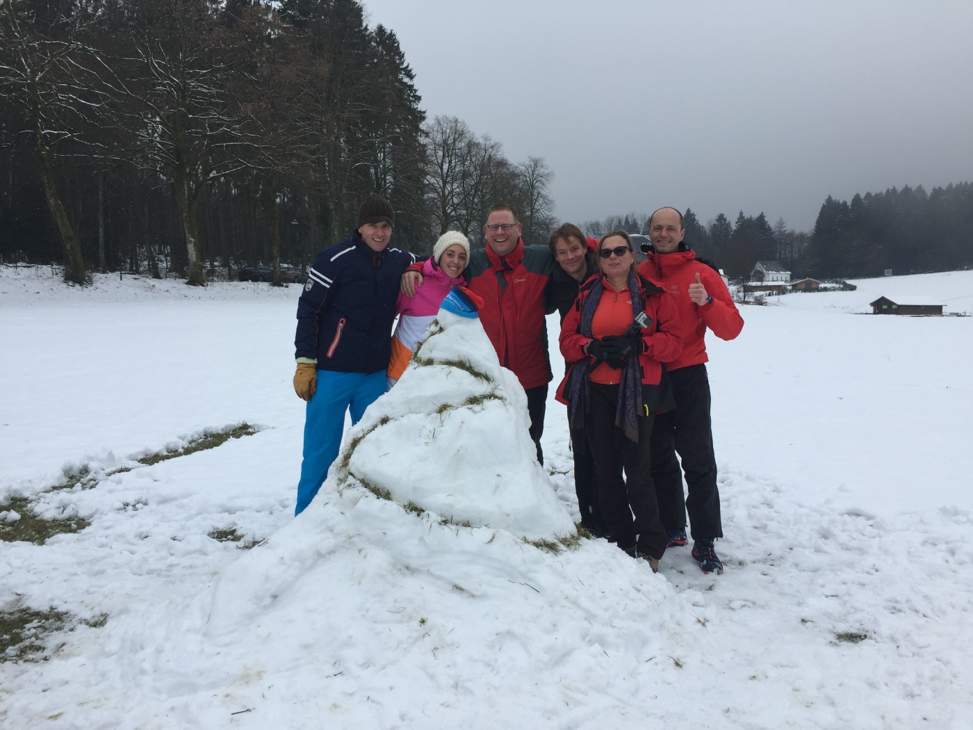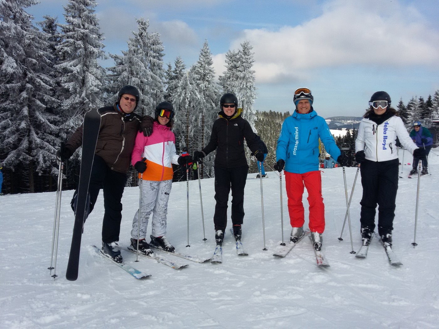 Velen waren maar nét op tijd om nog mee te kunnen feesten bij de après-ski, voor de bus weer naar het hotel ging om op te frissen voor het avondeten. Aansluitend nog een feestje bij Volldampf in Winterberg. En dan moe, maar voldaan naar bed. De volgende ochtend een sneeuwolympiade. Ik hoorde een hoop gekreun en gesteun bij het uitstappen van de auto’s… Stijf, spierpijn en waarschijnlijk had iedereen wel wat langer kunnen slapen. Maar eenmaal aan de gang met de spellen was dat allemaal snel vergeten. Wat een fanatisme! Iedereen was direct weer klaarwakker en actief/creatief.