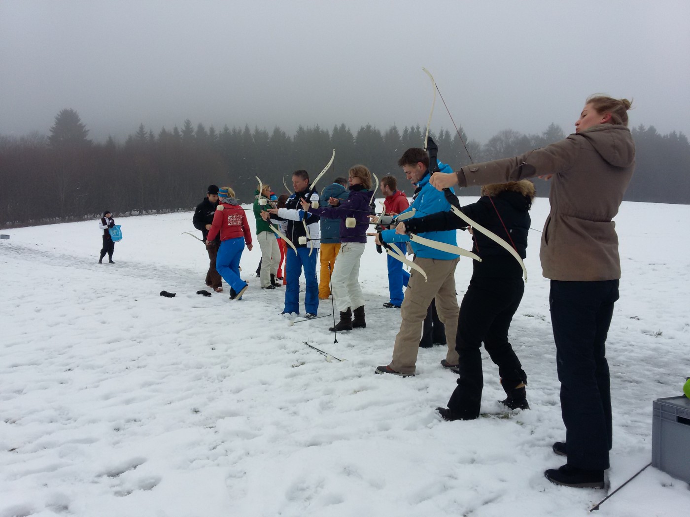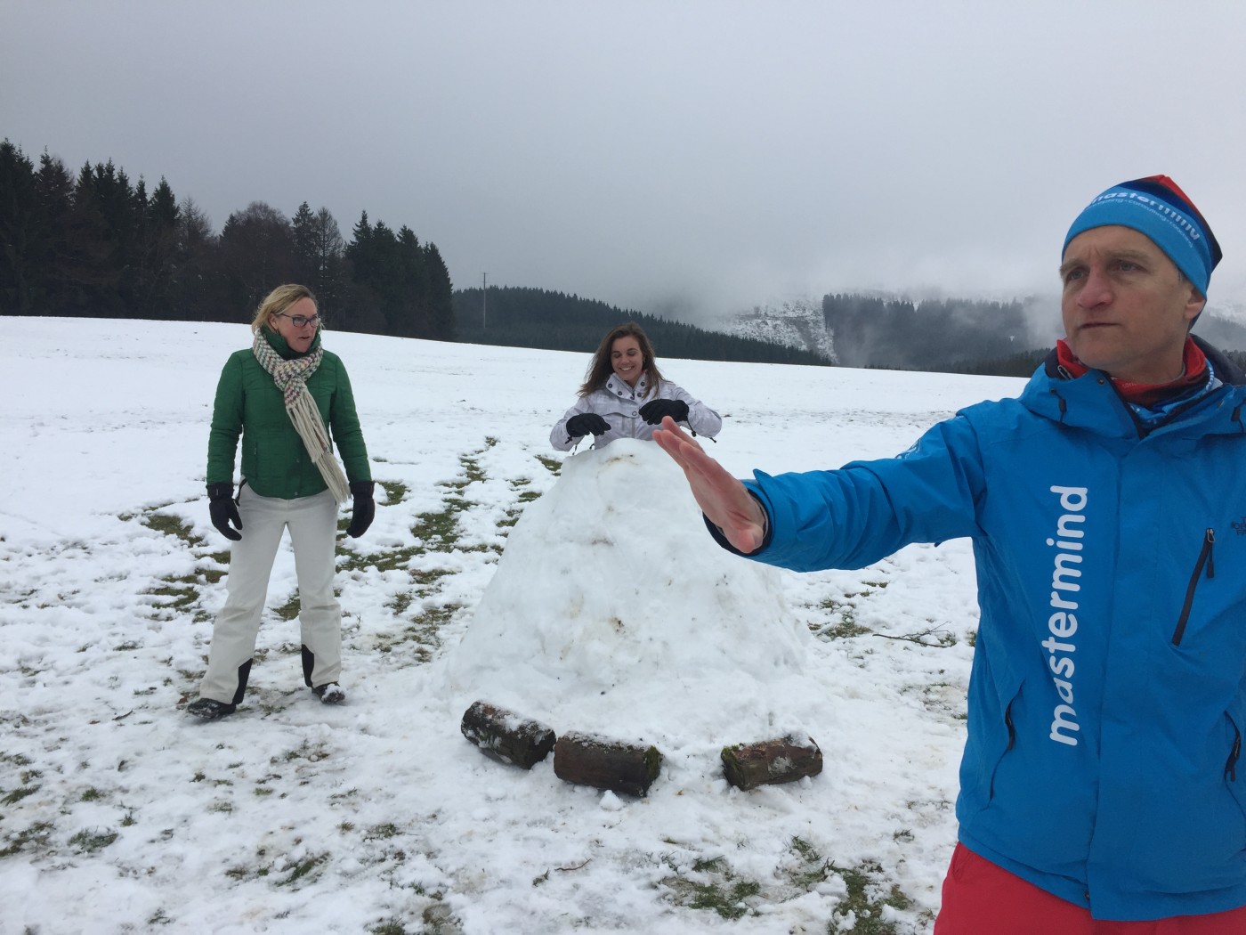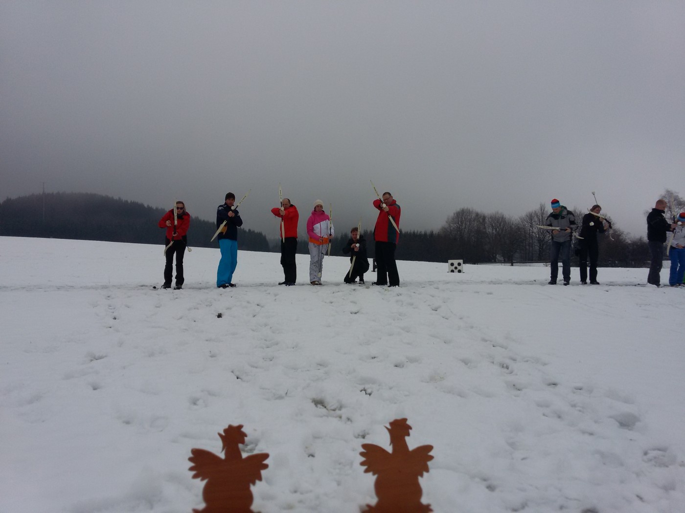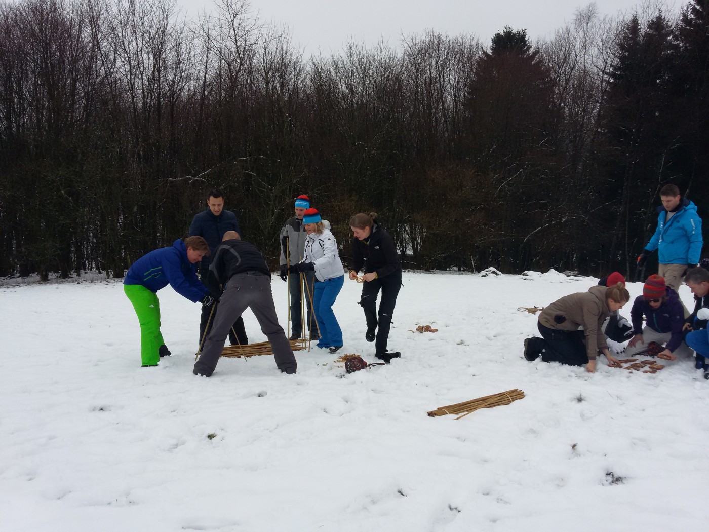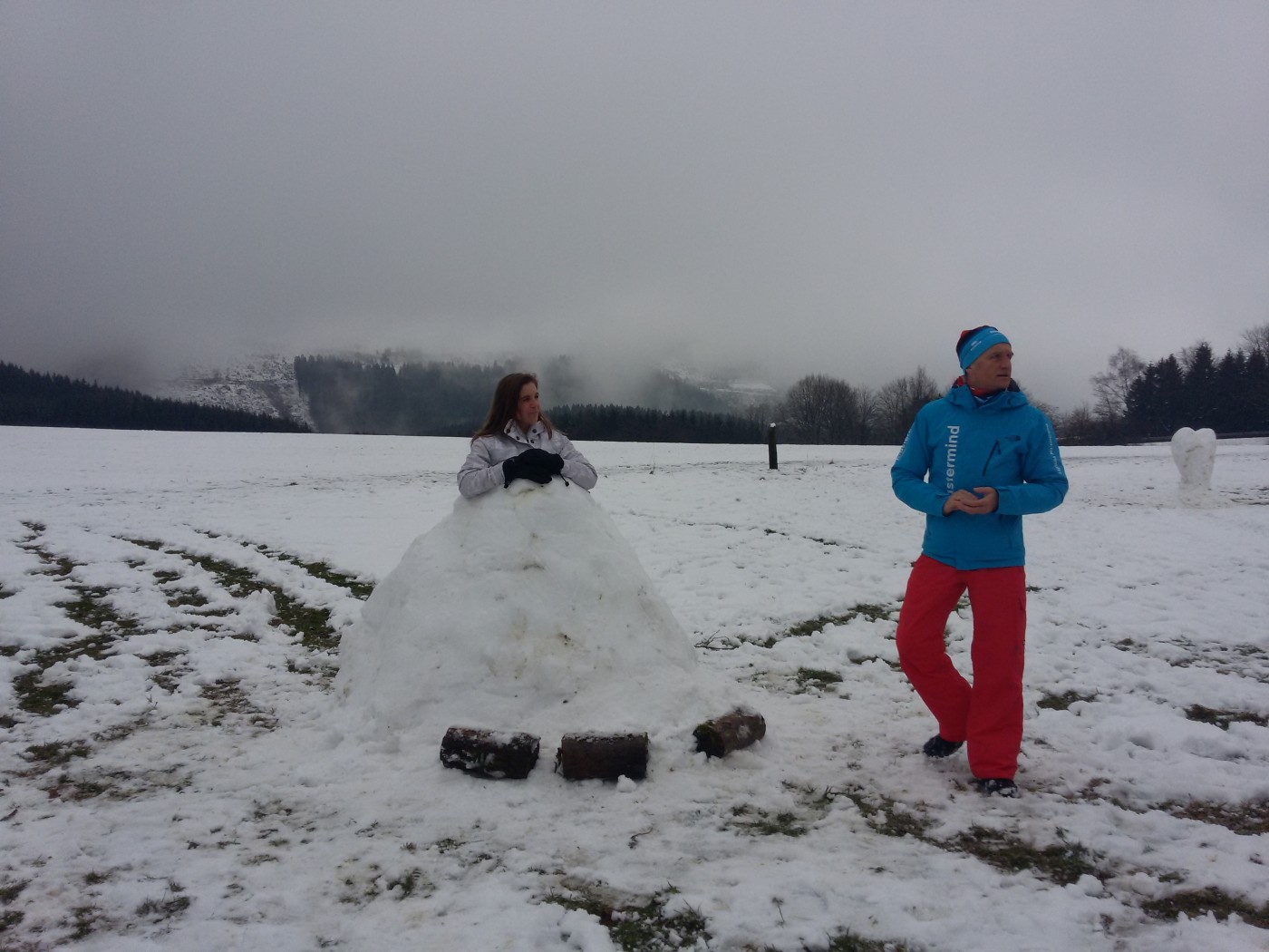 Velen waren maar nét op tijd om nog mee te kunnen feesten bij de après-ski, voor de bus weer naar het hotel ging om op te frissen voor het avondeten. Aansluitend nog een feestje bij Volldampf in Winterberg. En dan moe, maar voldaan naar bed. De volgende ochtend een sneeuwolympiade. Ik hoorde een hoop gekreun en gesteun bij het uitstappen van de auto’s… Stijf, spierpijn en waarschijnlijk had iedereen wel wat langer kunnen slapen. Maar eenmaal aan de gang met de spellen was dat allemaal snel vergeten. Wat een fanatisme! Iedereen was direct weer klaarwakker en actief/creatief.
