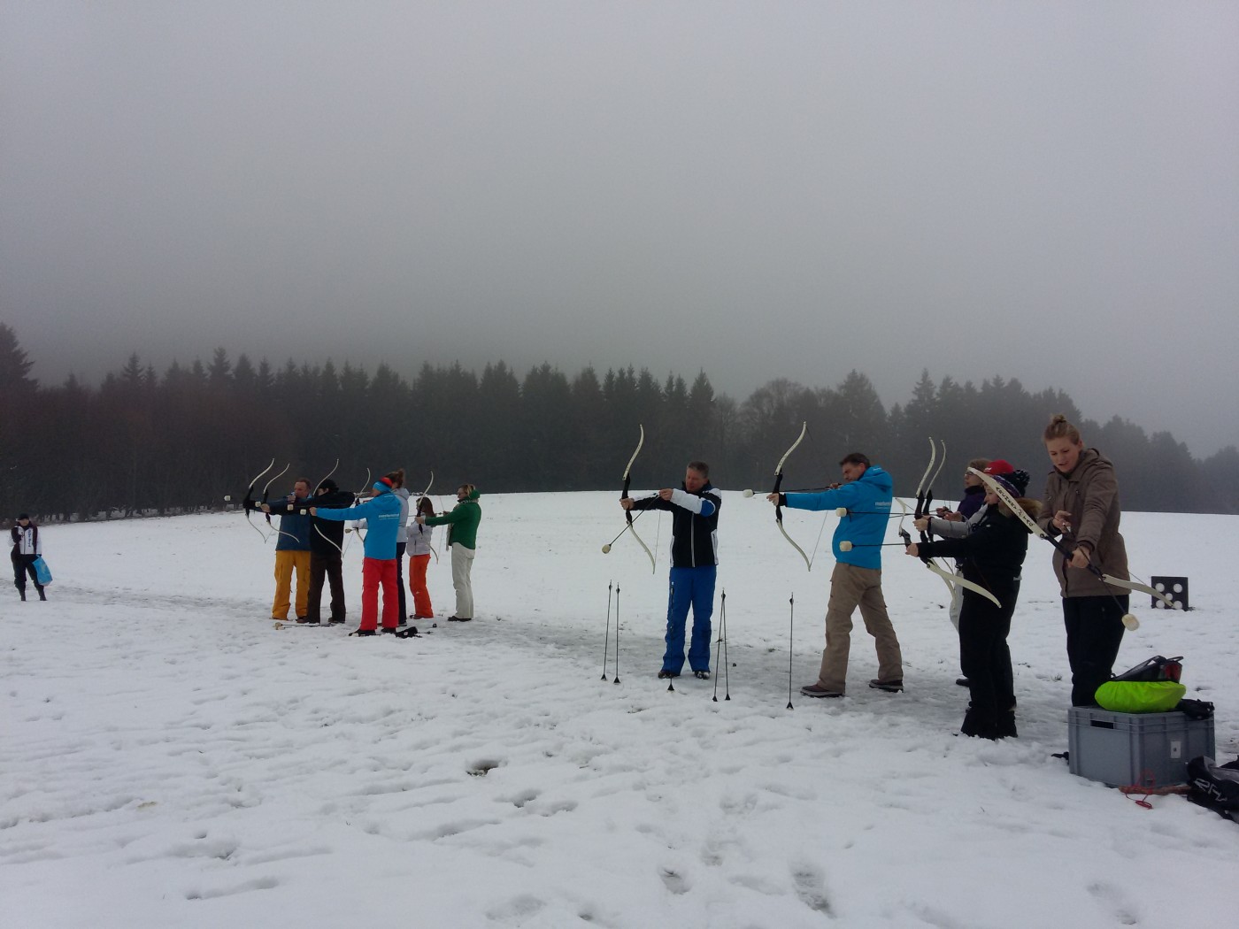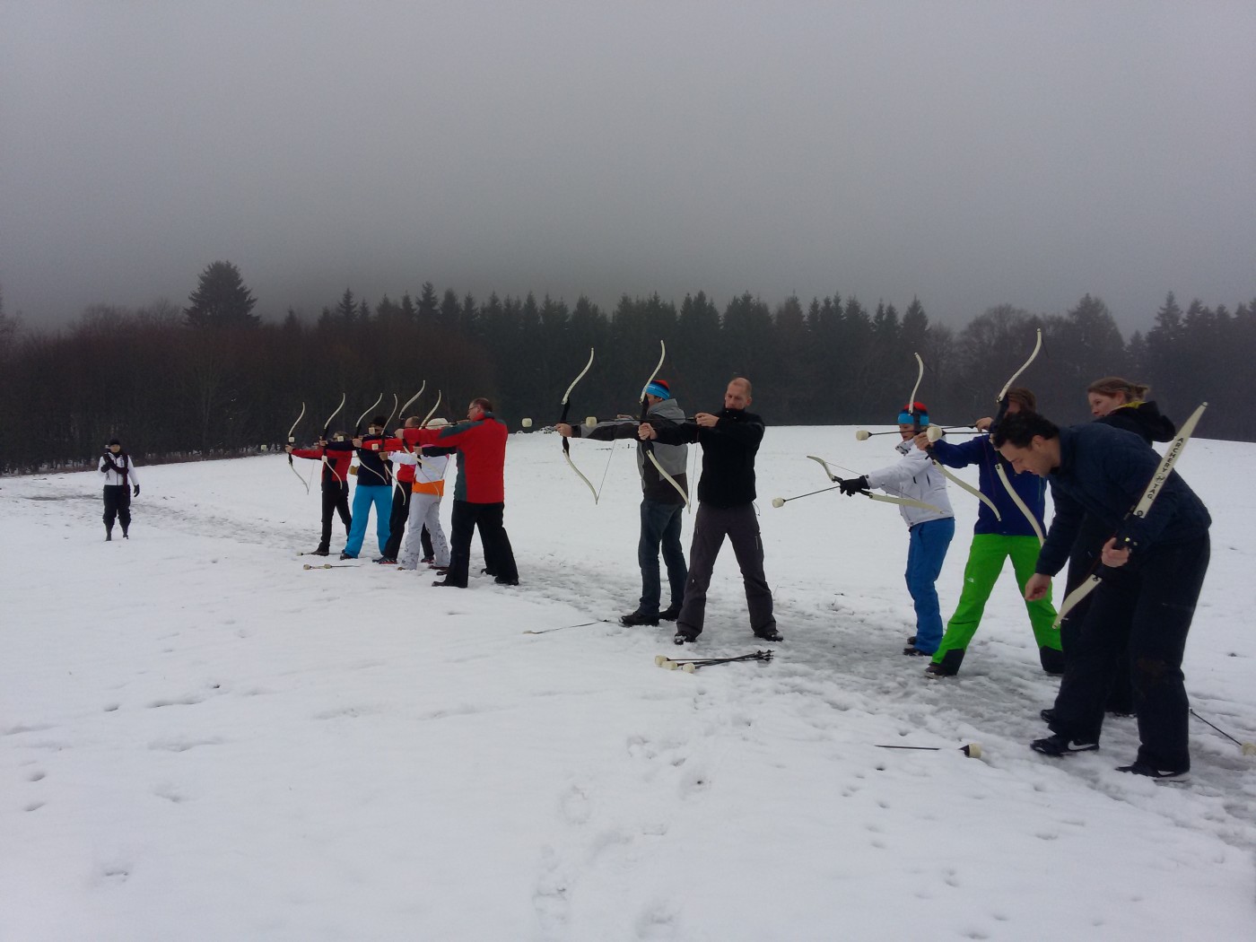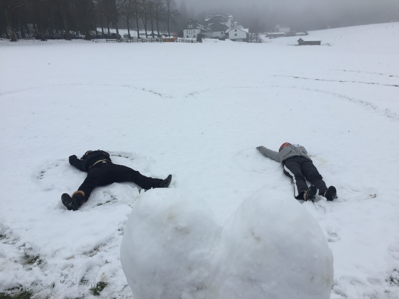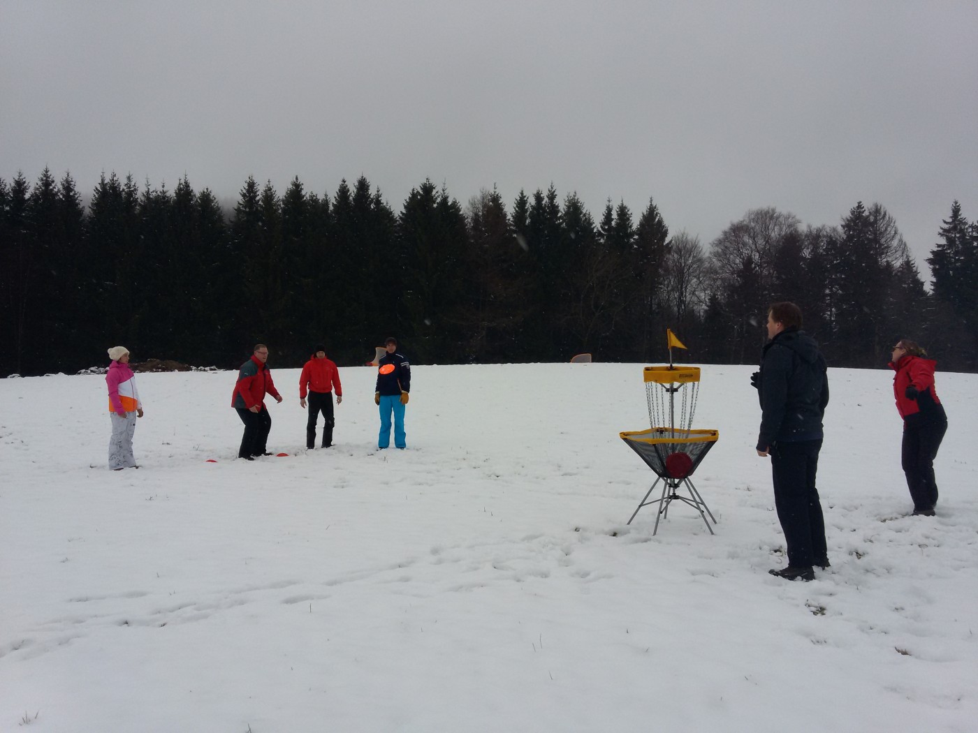 Velen waren maar nét op tijd om nog mee te kunnen feesten bij de après-ski, voor de bus weer naar het hotel ging om op te frissen voor het avondeten. Aansluitend nog een feestje bij Volldampf in Winterberg. En dan moe, maar voldaan naar bed. De volgende ochtend een sneeuwolympiade. Ik hoorde een hoop gekreun en gesteun bij het uitstappen van de auto’s… Stijf, spierpijn en waarschijnlijk had iedereen wel wat langer kunnen slapen. Maar eenmaal aan de gang met de spellen was dat allemaal snel vergeten. Wat een fanatisme! Iedereen was direct weer klaarwakker en actief/creatief.