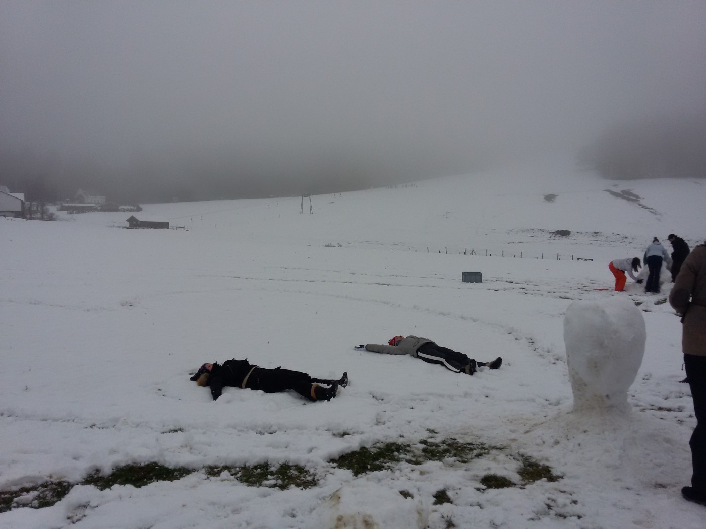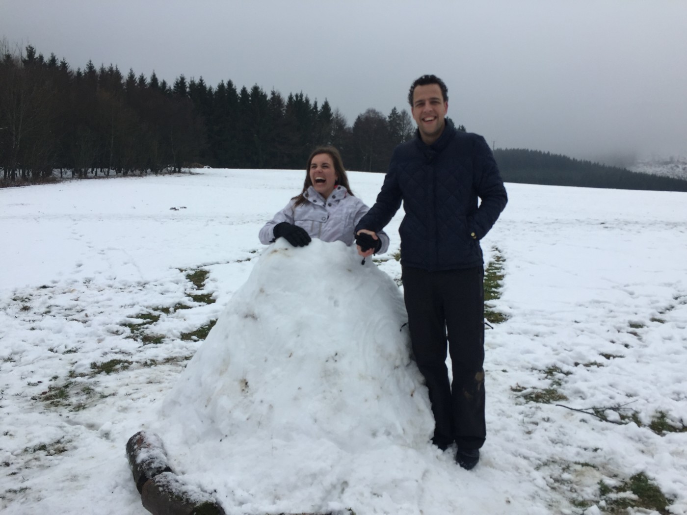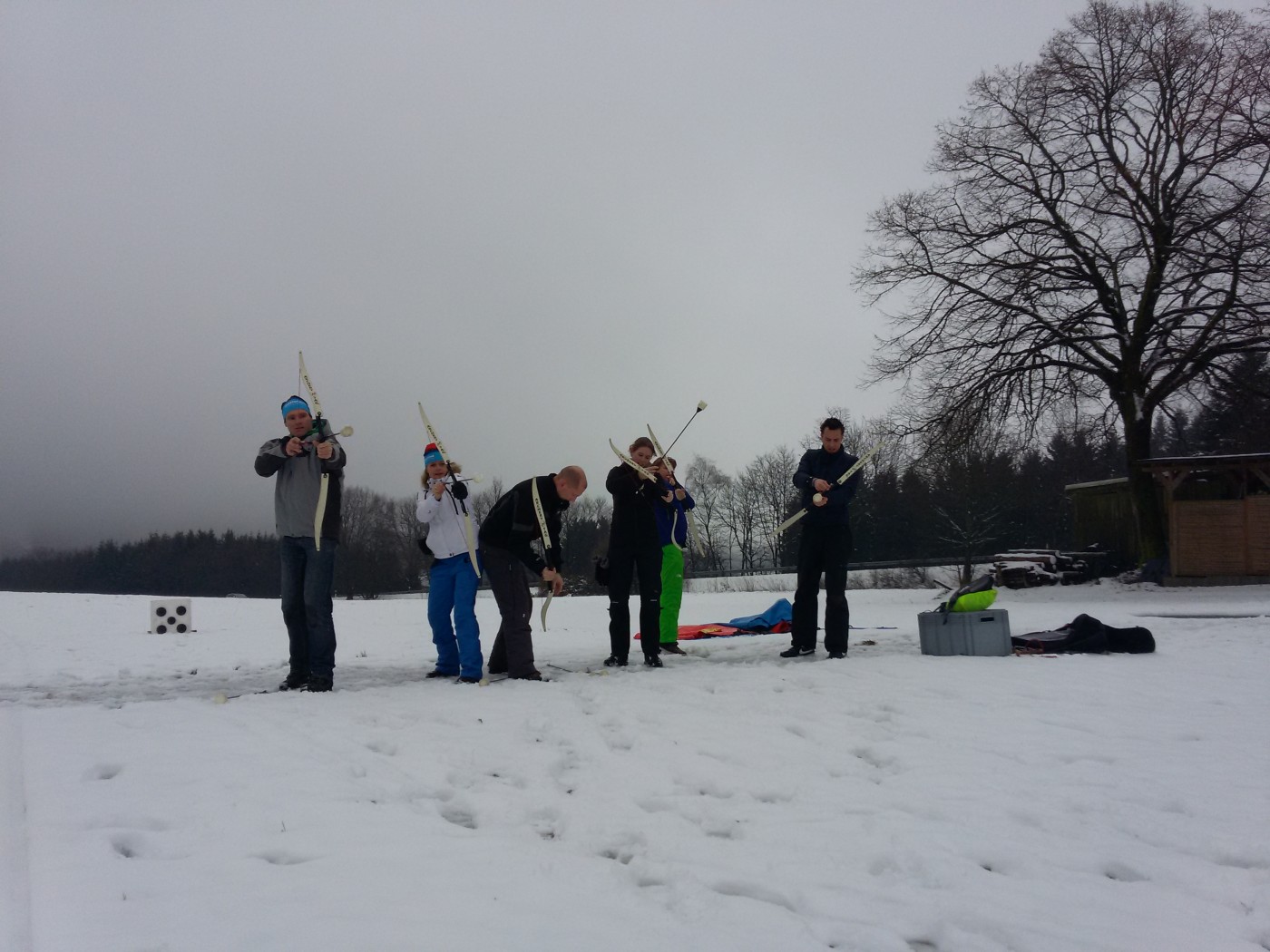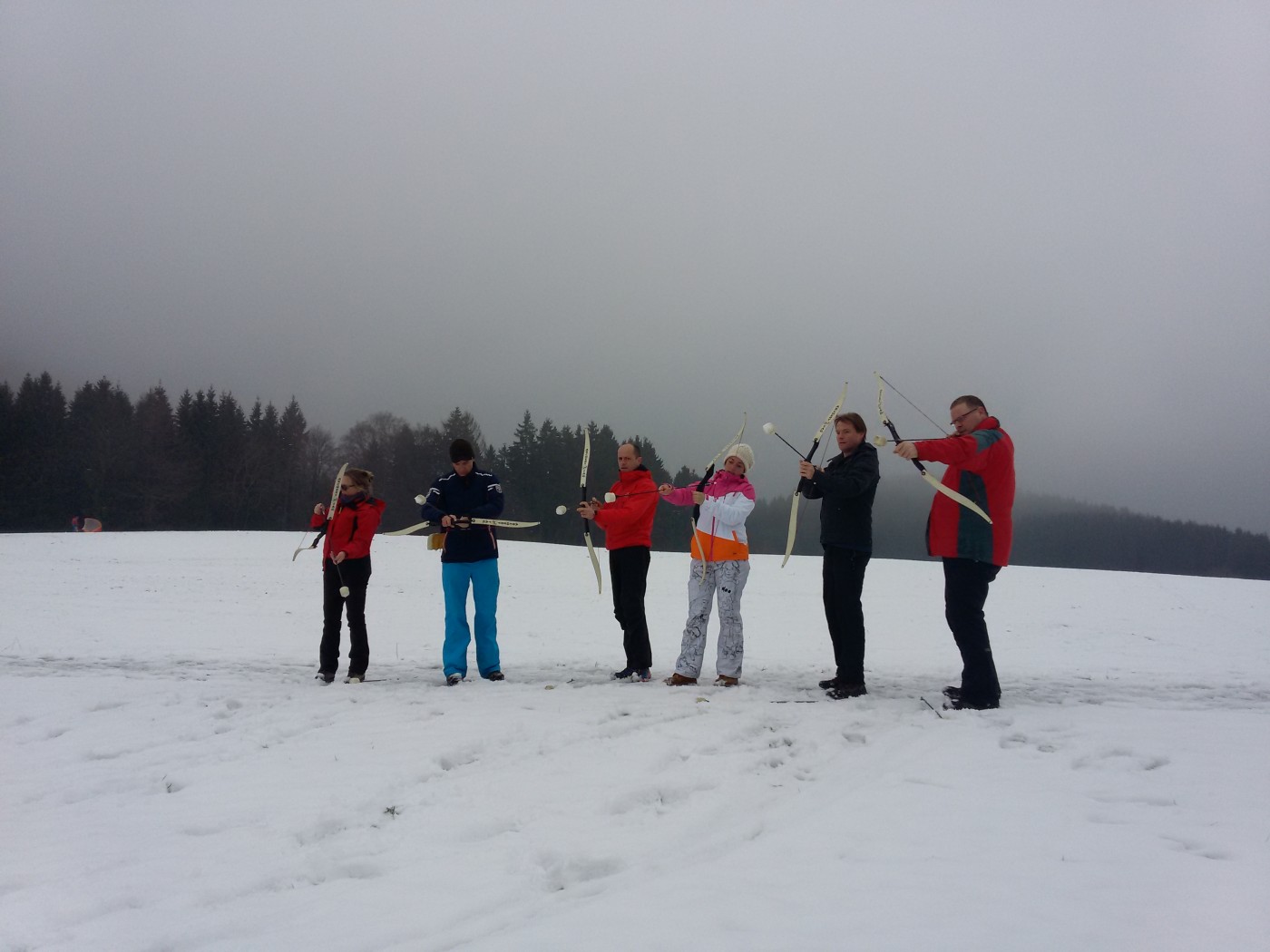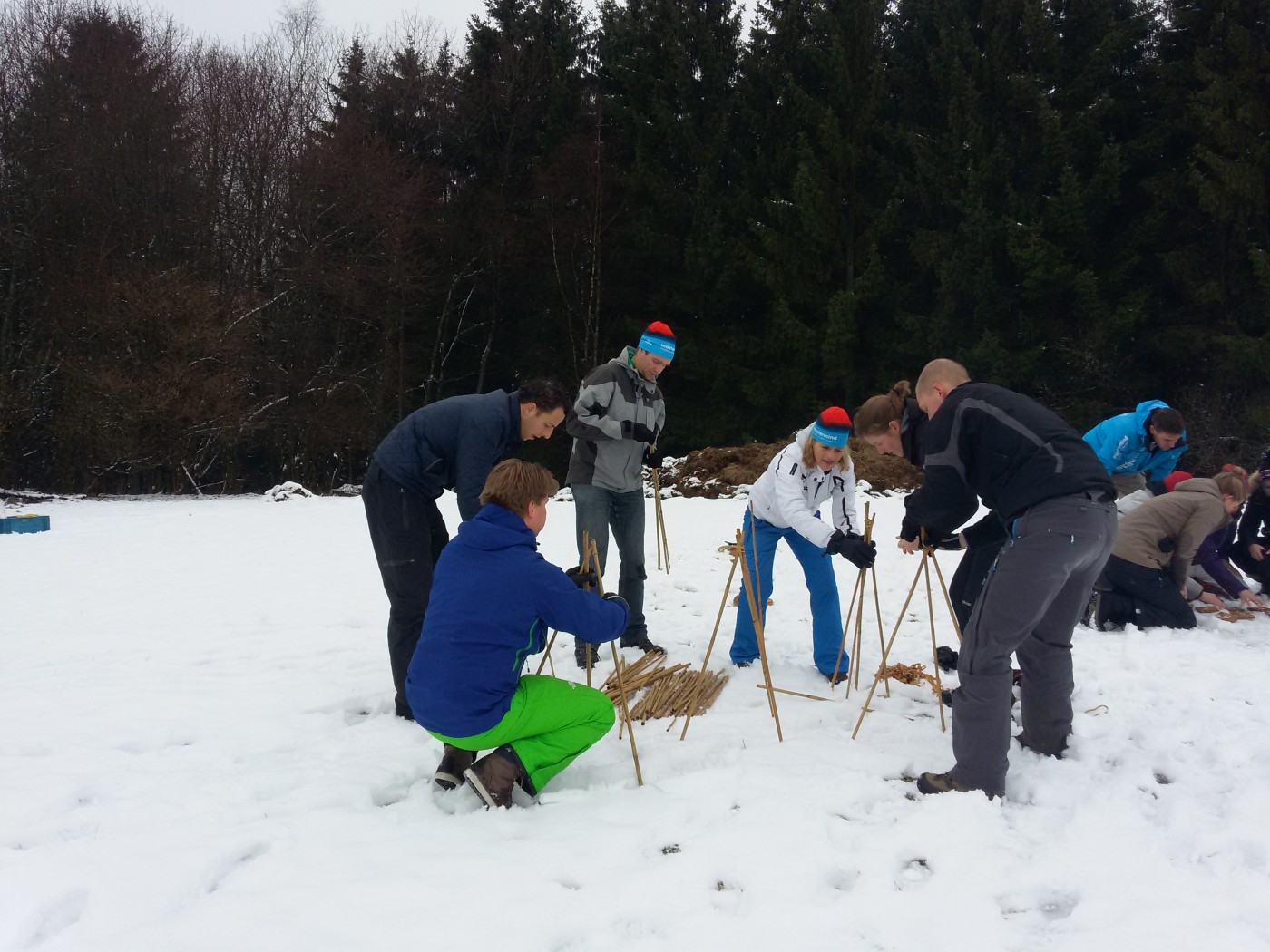 Velen waren maar nét op tijd om nog mee te kunnen feesten bij de après-ski, voor de bus weer naar het hotel ging om op te frissen voor het avondeten. Aansluitend nog een feestje bij Volldampf in Winterberg. En dan moe, maar voldaan naar bed. De volgende ochtend een sneeuwolympiade. Ik hoorde een hoop gekreun en gesteun bij het uitstappen van de auto’s… Stijf, spierpijn en waarschijnlijk had iedereen wel wat langer kunnen slapen. Maar eenmaal aan de gang met de spellen was dat allemaal snel vergeten. Wat een fanatisme! Iedereen was direct weer klaarwakker en actief/creatief.