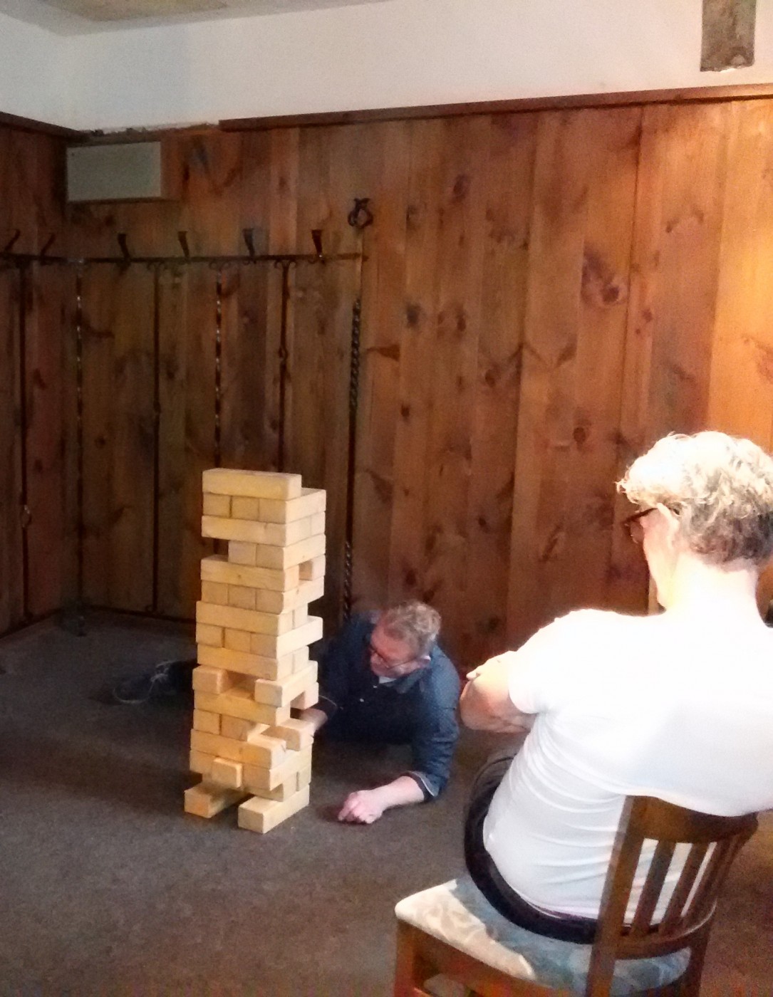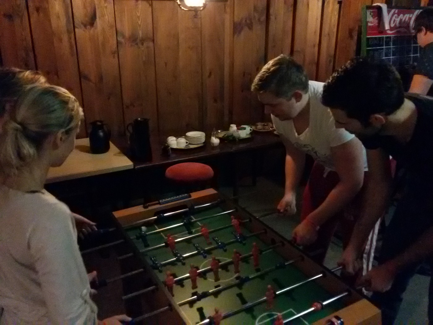 Heerlijk als iedereen de volgende dag zo fit is voor een kegel-, jenga- en tafelvoetbal- competitie!