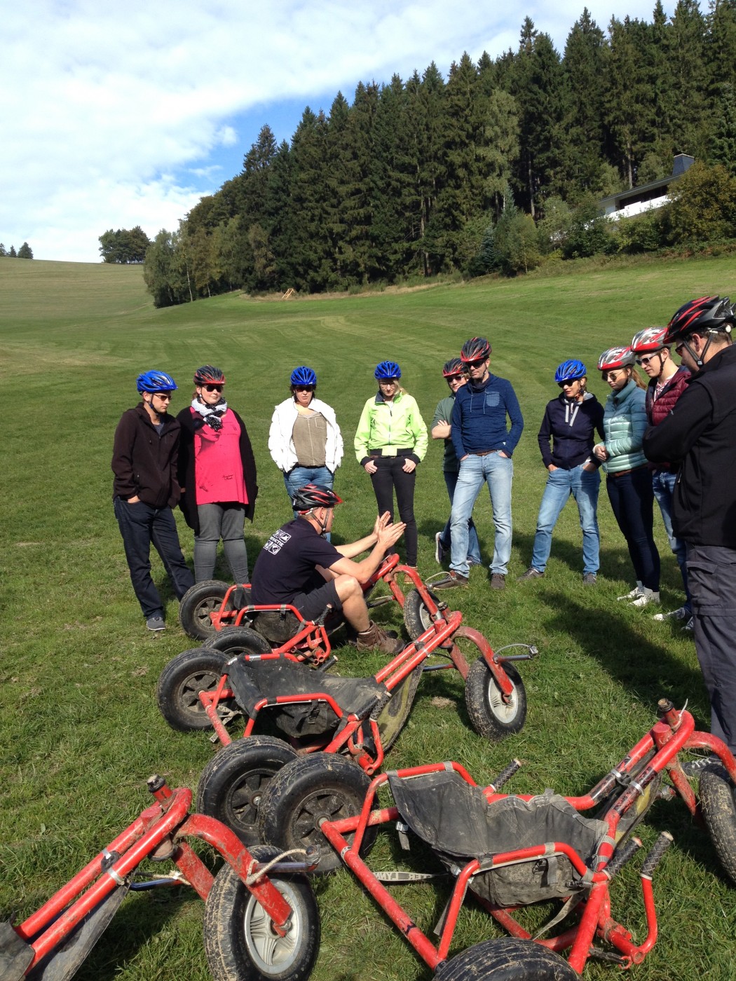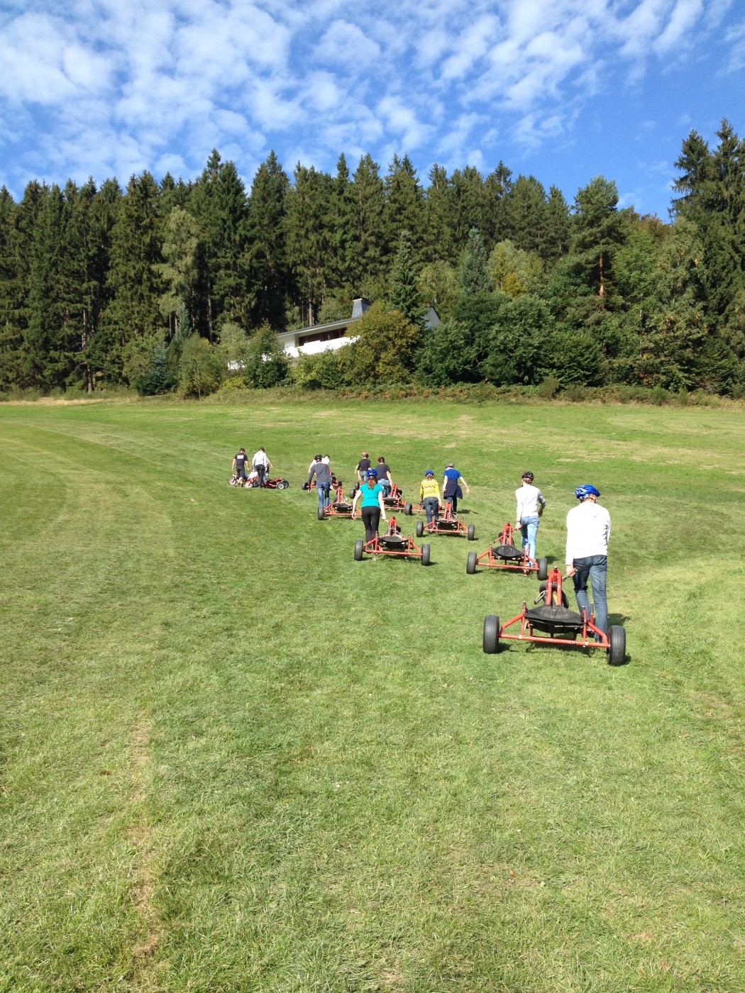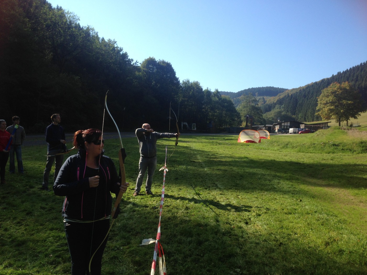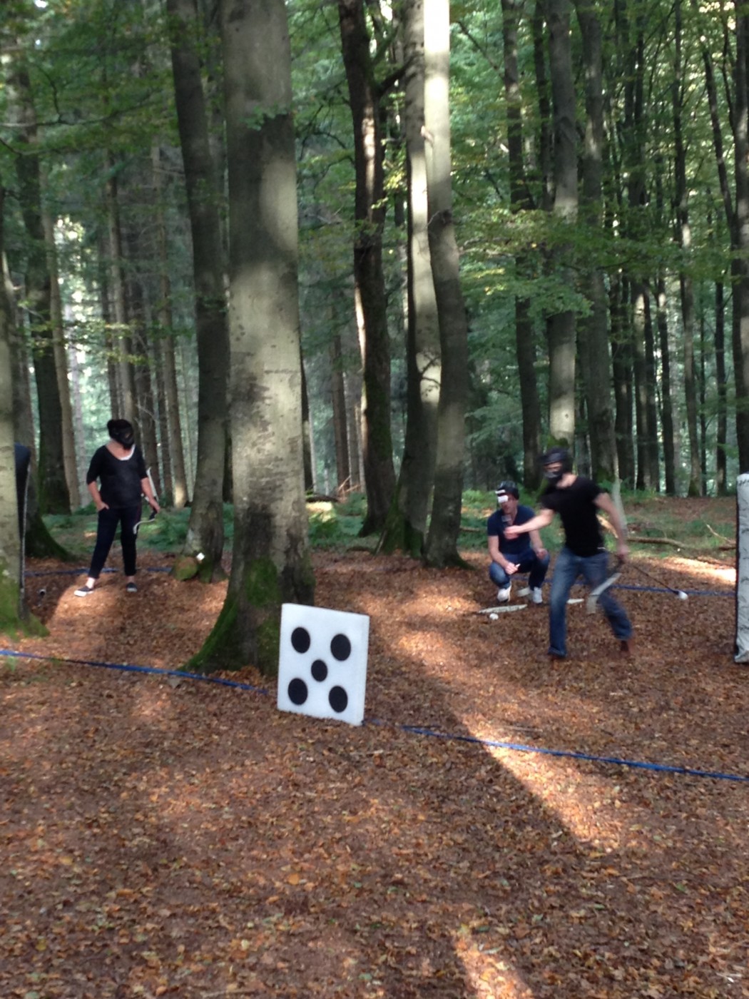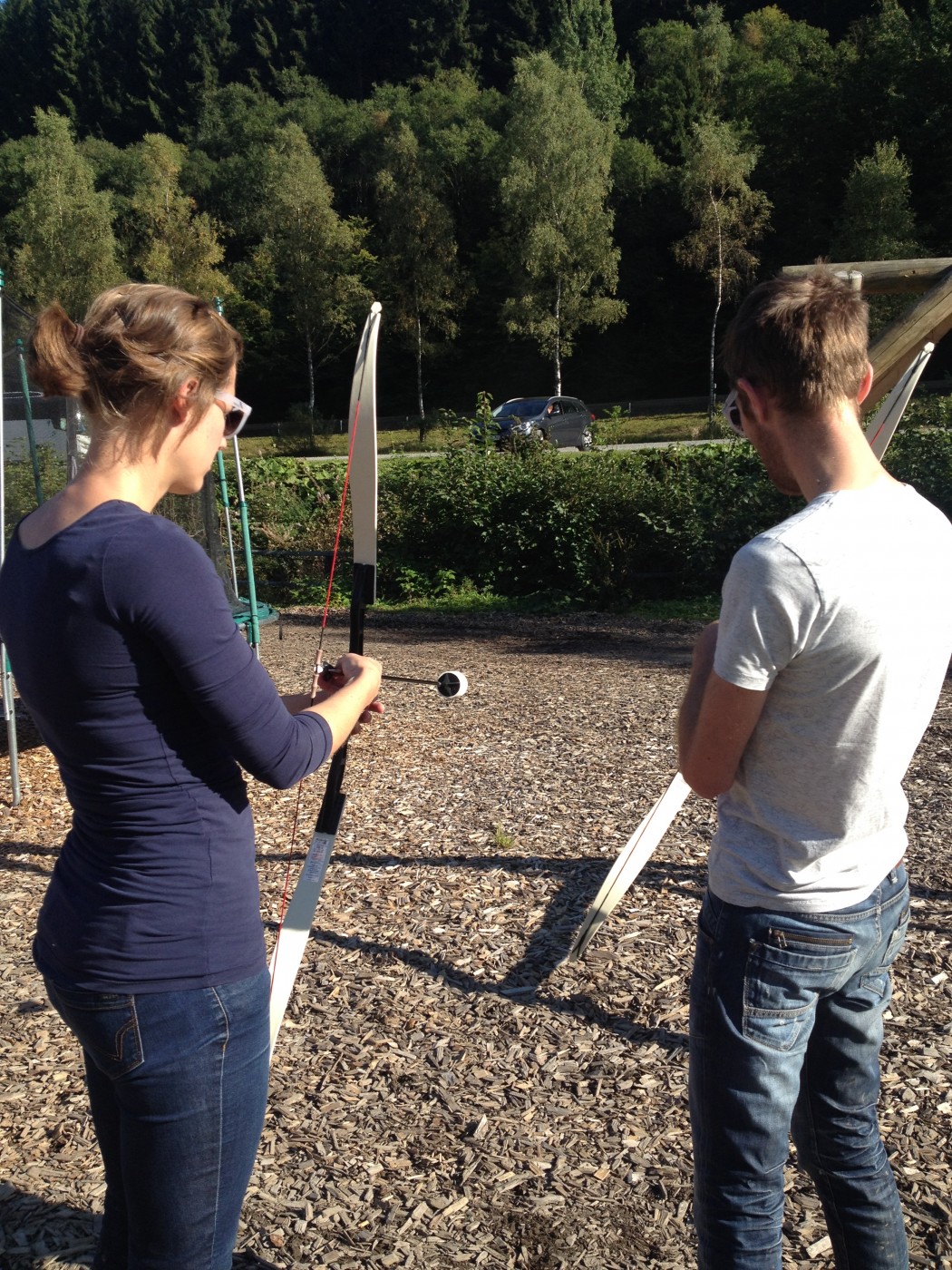 Er was een druk, breed programma opgesteld. In drie rondes kon er gekozen worden voor speedbuggyen, downhill steppen, ArcheryTag, boogschieten en knotshockey. Voor iedereen die nog niet helemaal wakker was, werd er in de ochtend boogschieten georganiseerd. Het doel van dit potje boogschieten was simpel: als eerste bij het laatste bord komen. Super fanatiek ging iedereen schieten, het is natuurlijk stiekem ook wel heel leuk om te winnen. Na het boogschieten werd de eerste ronde afgesloten met nog een potje knotshockey. Ook bij de andere activiteiten ging het er fanatiek aan toe. Het leuke aan speedbuggyen en downhillsteppen is dat je met de lift omhoog kan en dat je daarna lekker en op je eigen tempo naar beneden kan racen. Voor de ArcheryTaggers, was er dit keer een extra onderdeel toegevoegd. Tijdens de wandeling richting het veld, konden er extra levens gewonnen worden, dit door op verschillende targets te schieten. Super fanatiek ging iedereen te werk, want een goed begin is natuurlijk het halve werk. De extra levens konden uiteindelijk ingezet worden tijdens het potje ArcheryTag.