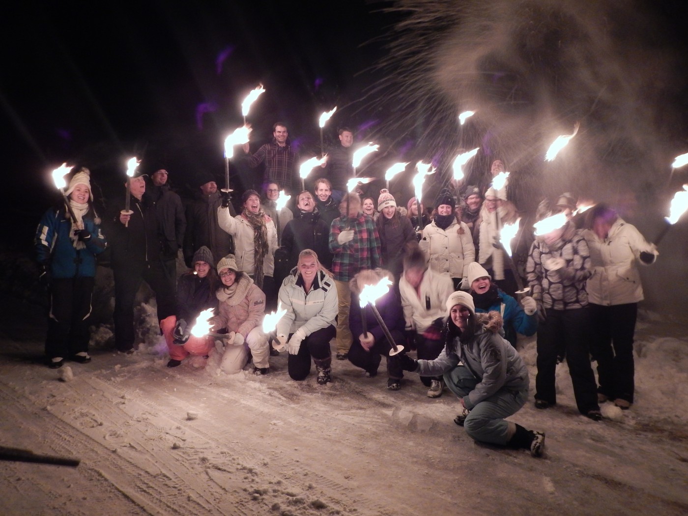 Na een lange rit door de sneeuw wacht Robidus een warm welkom bij Gasthof Zwilling. Eerst wordt er vergaderd en daarna is het tijd voor een mooie wandeling door de diepe sneeuw naar de skiverhuur. In de avond maken we een mooie fakkelwandeling door het sprookjesachtige winterlandschap. Halverwege is het tijd voor schnapps, Glühwein en een grote bilslee wedstrijd.