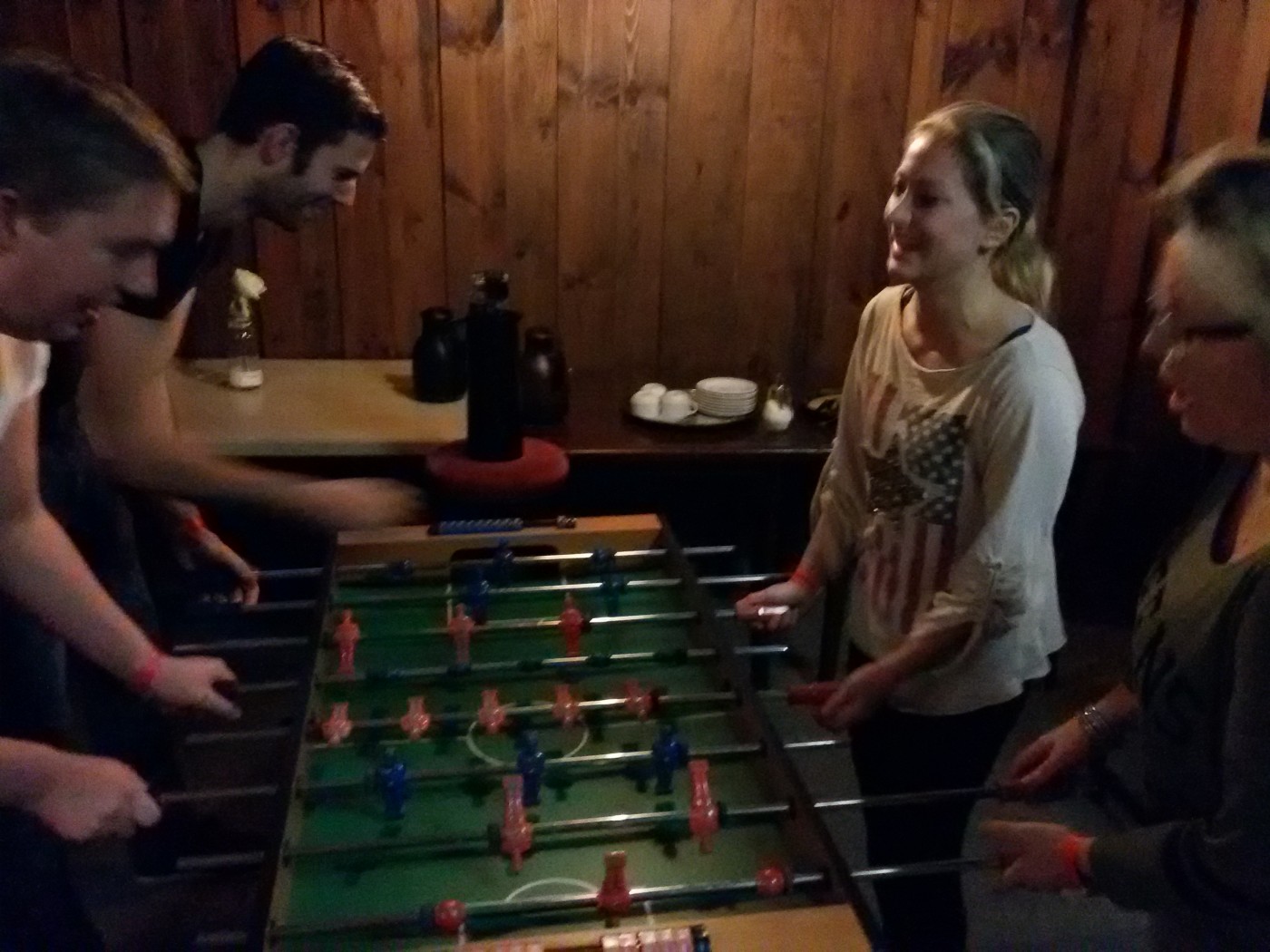 Heerlijk als iedereen de volgende dag zo fit is voor een kegel-, jenga- en tafelvoetbal- competitie!